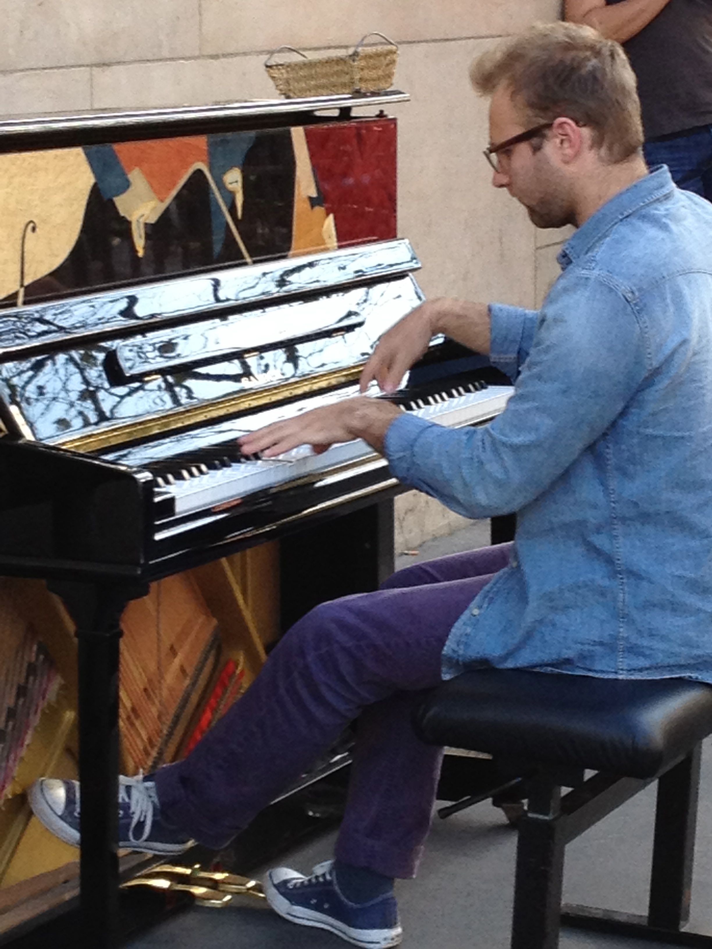 Additionally, in these fancy parts, the street performers are equally refined; there are no breakdancers or jugglers or mimes. Instead, we listen to expertise from a gleaming piano. The Lancome ad featuring Julia Roberts (that we see all over town) that declares: “La vie est belle” seems indisputable as we listen to this music.