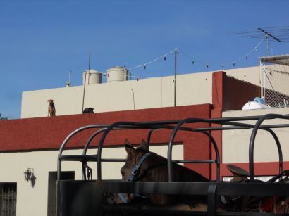 Flaco (Skinny) is the pet name I can be caught assigning to the countless dogs I stray into while wandering the streets of Oaxaca. These canines are all undeniably skinny, and they each seem to have their own, mostly mellow, manner of navigating the traffic and noise. This is why I was surprised when I saw a dog on a roof, roaring at a horse.