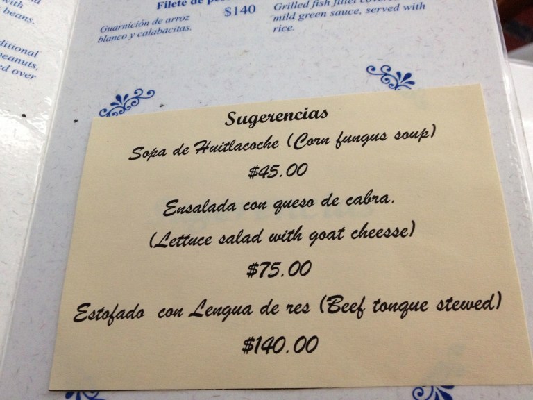 Oaxacan food, for the most part, is delicious. That said, there are some things that are more appetizing than others. I prefer the moles and tamales to specials such as the one above. And, I love looking at all of the beautiful pastries and their clever names. There is one called a pan beso (bread kiss) that has two buns stuck together with a red jelly. Cupcakes are called panque. And, there are other pastries that look like an ear called orejas (ears). There’s even one called a veladora (candle). You can get one shaped like a pig (puerquito), one that tastes like pecans (nuez), one that looks like a shell (concha), and one that looks like a cow’s eye (ojo de buey). There are donuts (bunuelos, churros, and donas) and cookies (galletas) with all sorts of decorations (including sprinkles and smiley faces).