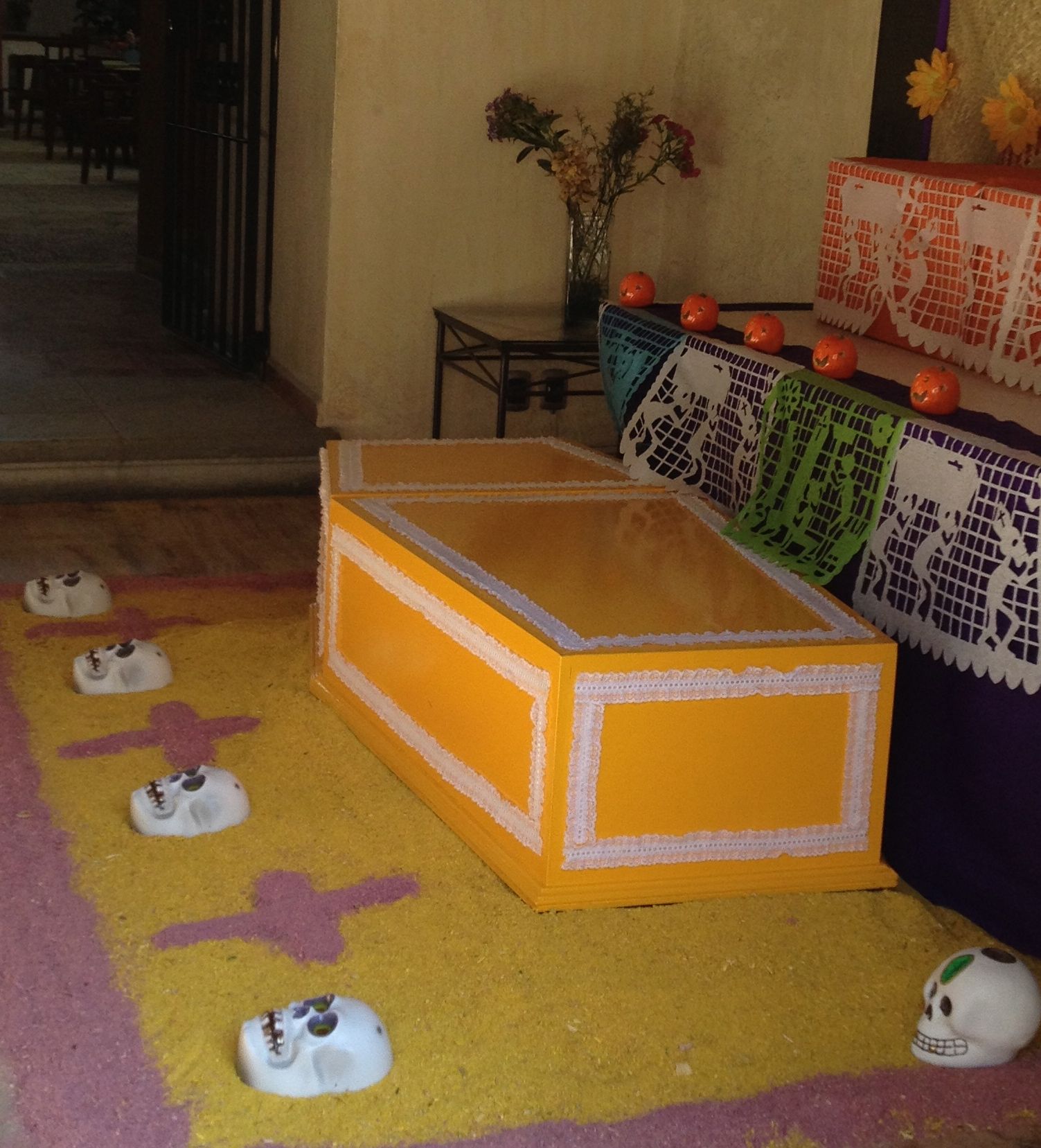 I saw this beginning of an altar at a hotel. According to http://oaxacalive.com/muertos.htm: