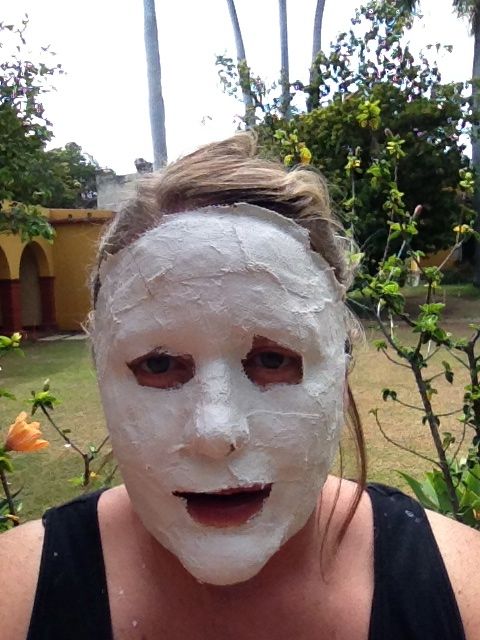 Ten minutes with my mask in the sun (and the rest of me, too), and it was dry enough to begin removing. First, I had to scrunch up my face; the forehead was the hardest part. Then, she began to pull the mask from my skin. A few strands of hair came along as well.