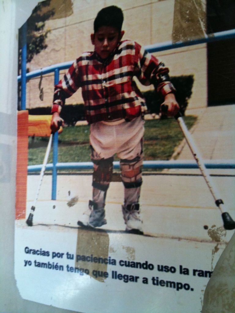 Regarding the physically challenged person, I have never noticed discourtesy here in Oaxaca such that it warrants a sign or more.