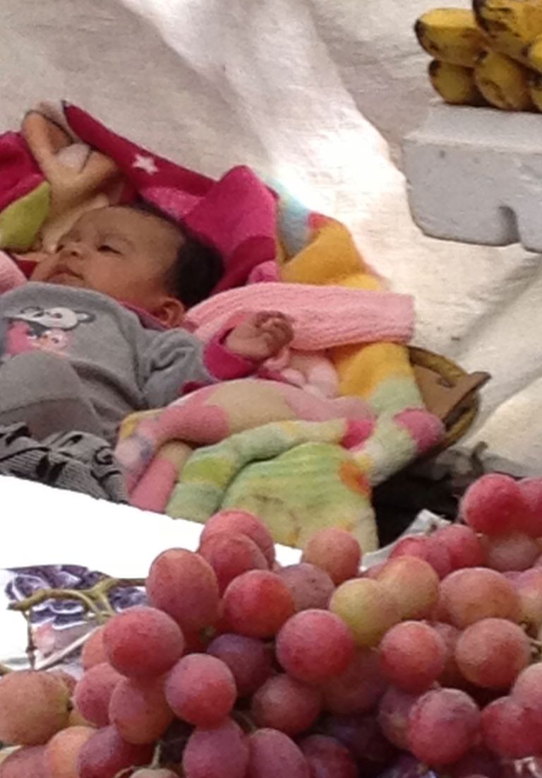 I was at a stand trying to surreptitiously take a photo of a baby in a basket among the other produce for sale when I heard a whistle blow loudly and for what seemed to be a long time; then I heard it again. People started moving quickly; several men started running.