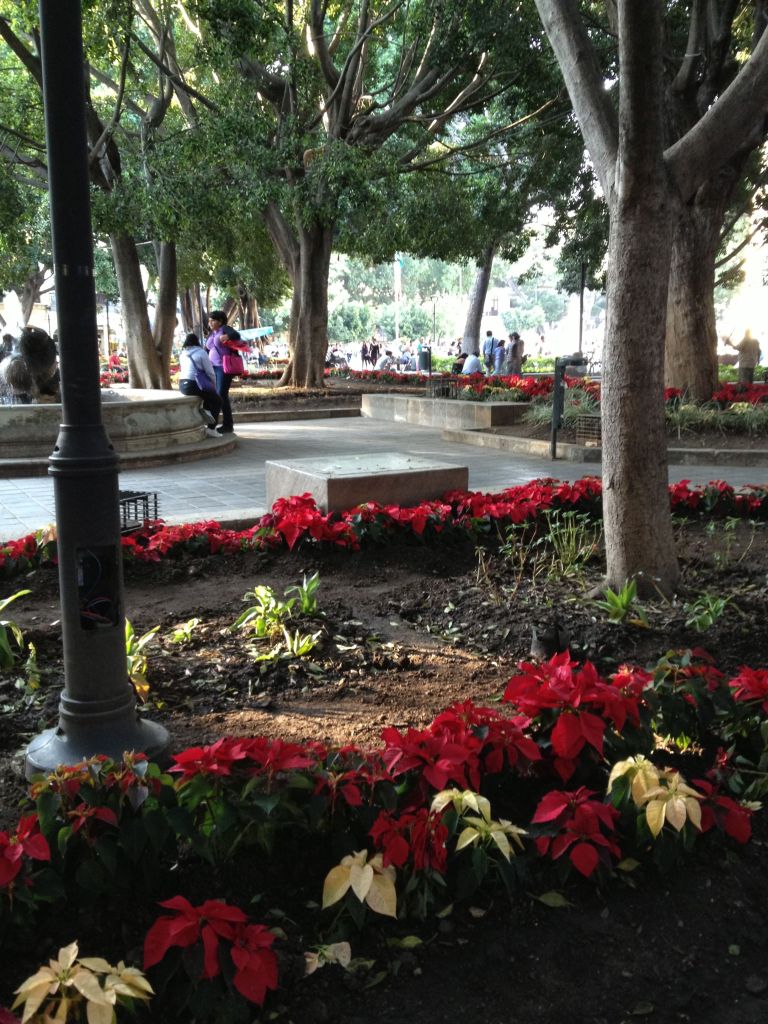 Restaurants, hotels, and even fancy bars are festooned and garlanded or are in the process of being adorned. The Zocalo features poinsettias (noche buenas), but will there be an enormous tree? What will the churches do with flowers and light to ring in the season? When will the calendas start? What do the villages look like? What will I do to celebrate this holiday? I will let you know as I find out more.