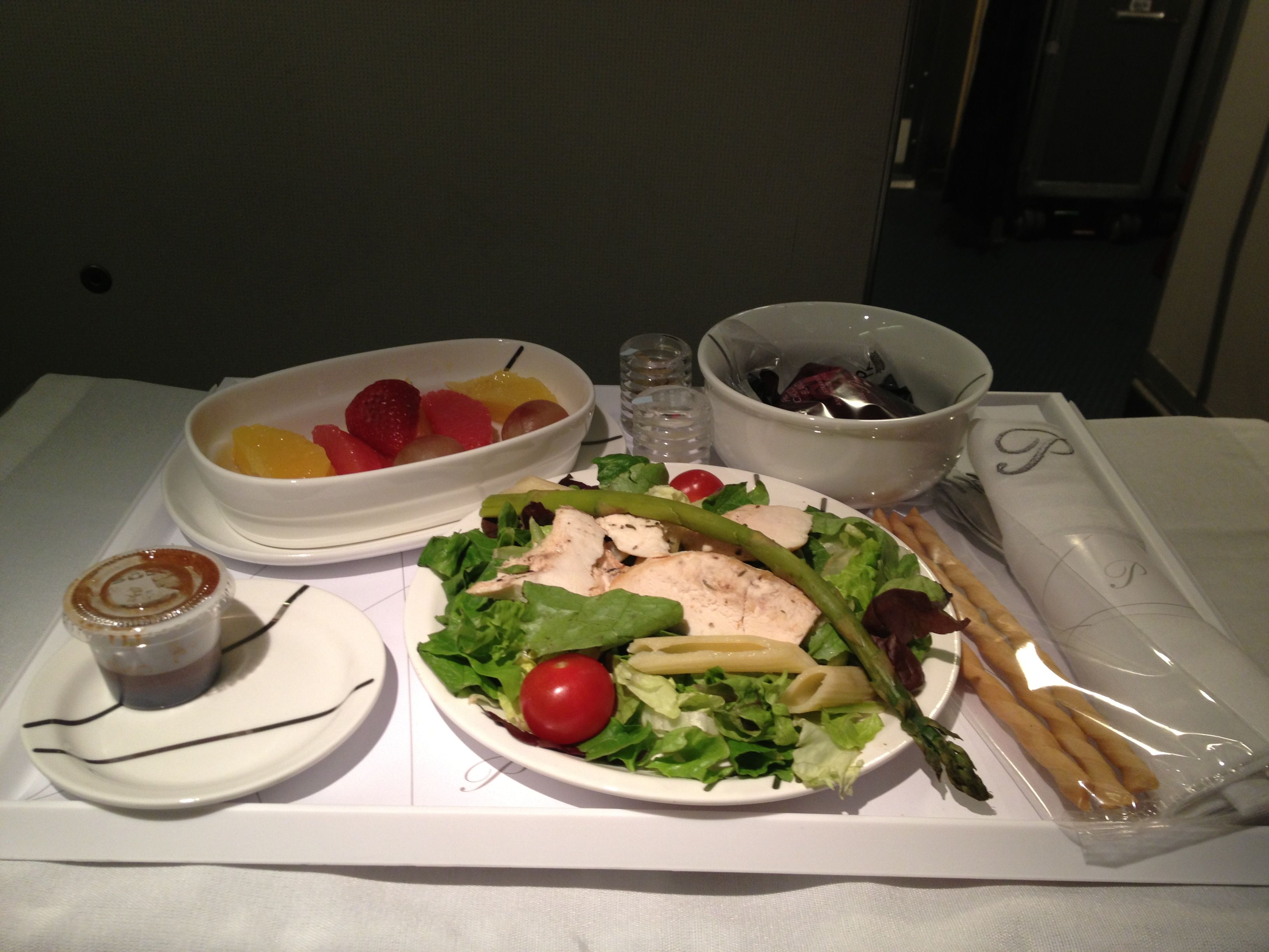 First Class passengers enjoy large, comfy seats, real glassware, hot food, and even their own version of the airline’s magazine — with advertising focused on bigger ticket items. Who knew? A glass dish of trail mix instead of a tiny bag of peanuts, a starched linen napkin, and extra legroom…most importantly, we flew all of the way home.