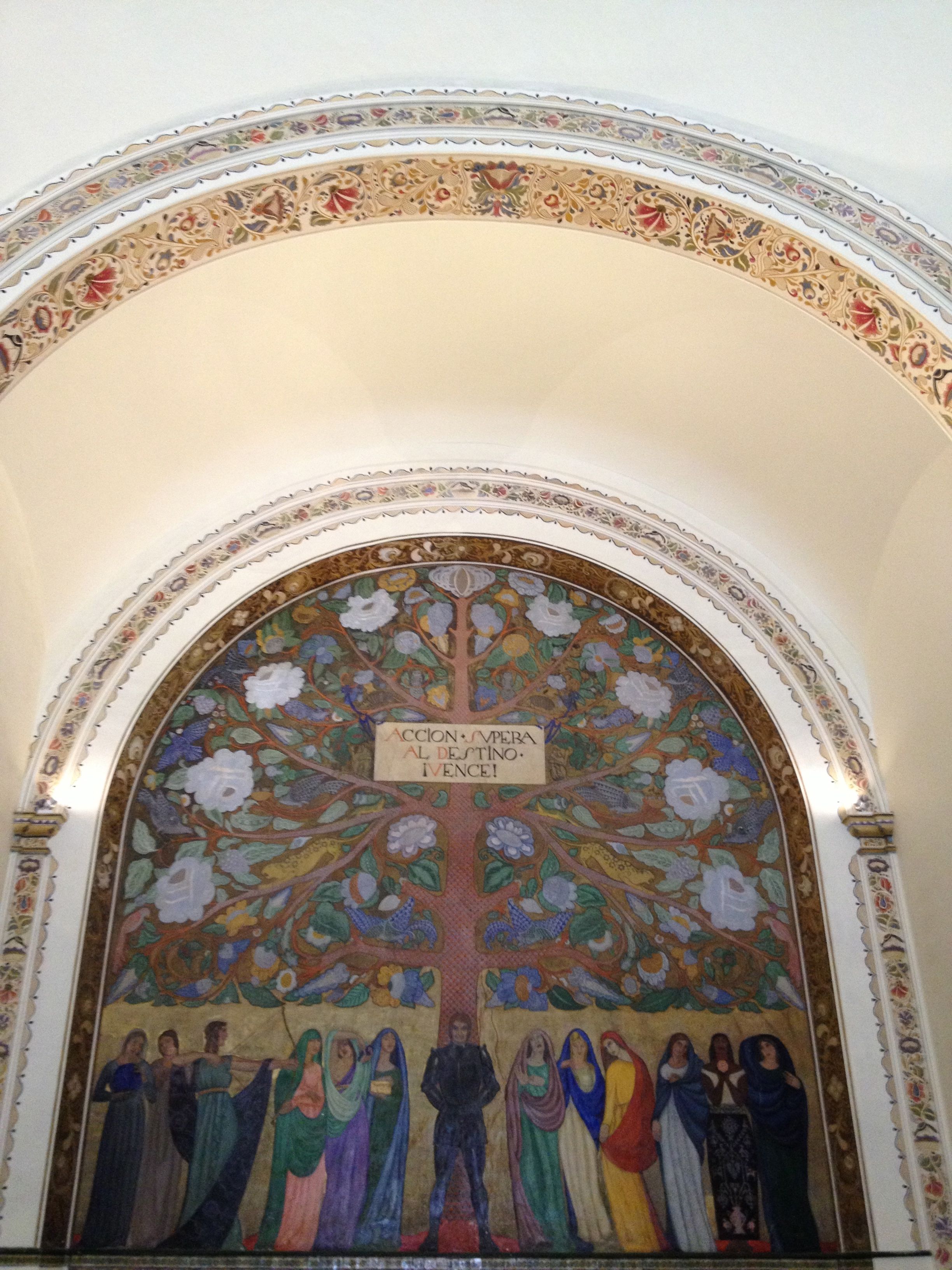 2. The centerpiece is a tree titled, “El Arbol de la ciencia o El arbol de la vida,” (“The tree of science or the tree of life”) 1922, Roberto Montenegro that features twelve women and one man. It is captivating. And, one instantly notices these striking females. They represent fruits.