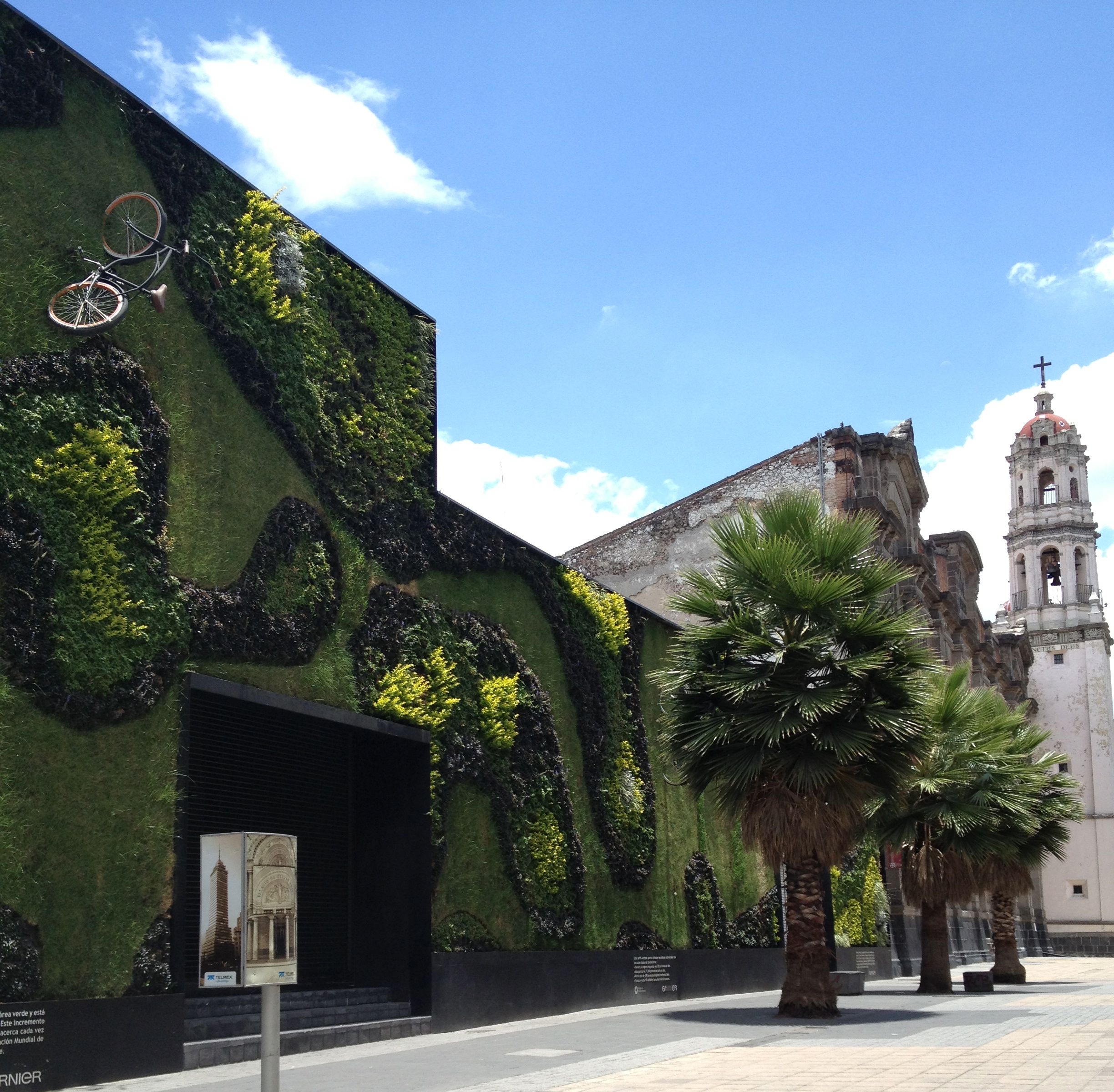 Lost on Sunday, I came across a vertical garden, grass and shrubs growing a different sort of upwards, a meadow thriving on a wall. I searched the Internet and learned there are two more already. They are part of the greening of Mexico City and they mean less brown air hovering over (and settling in) us. I now have data and examples.