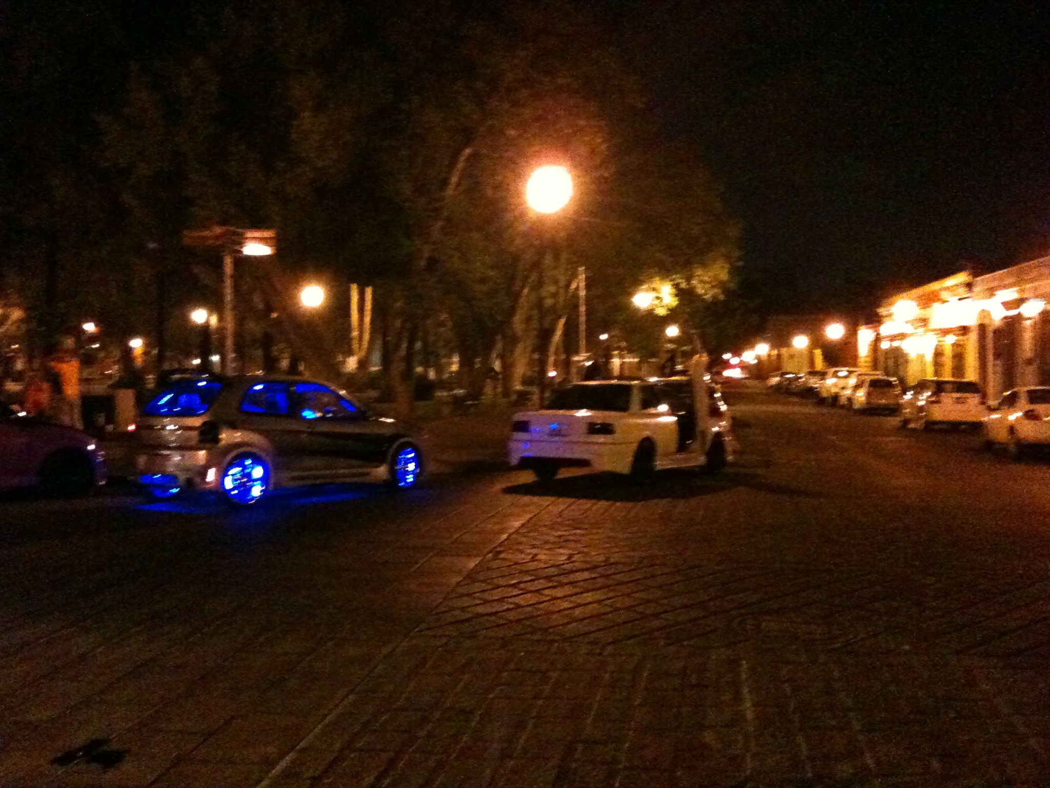 Friday night, rounding the corner onto my street, I saw a group of car aficionados. Though the restaurant on the corner had a singer, they were blaring tunes from their fancy cars. One reminded me of a tiny disco: blue lights, booming music, and people seeking the attention of others.