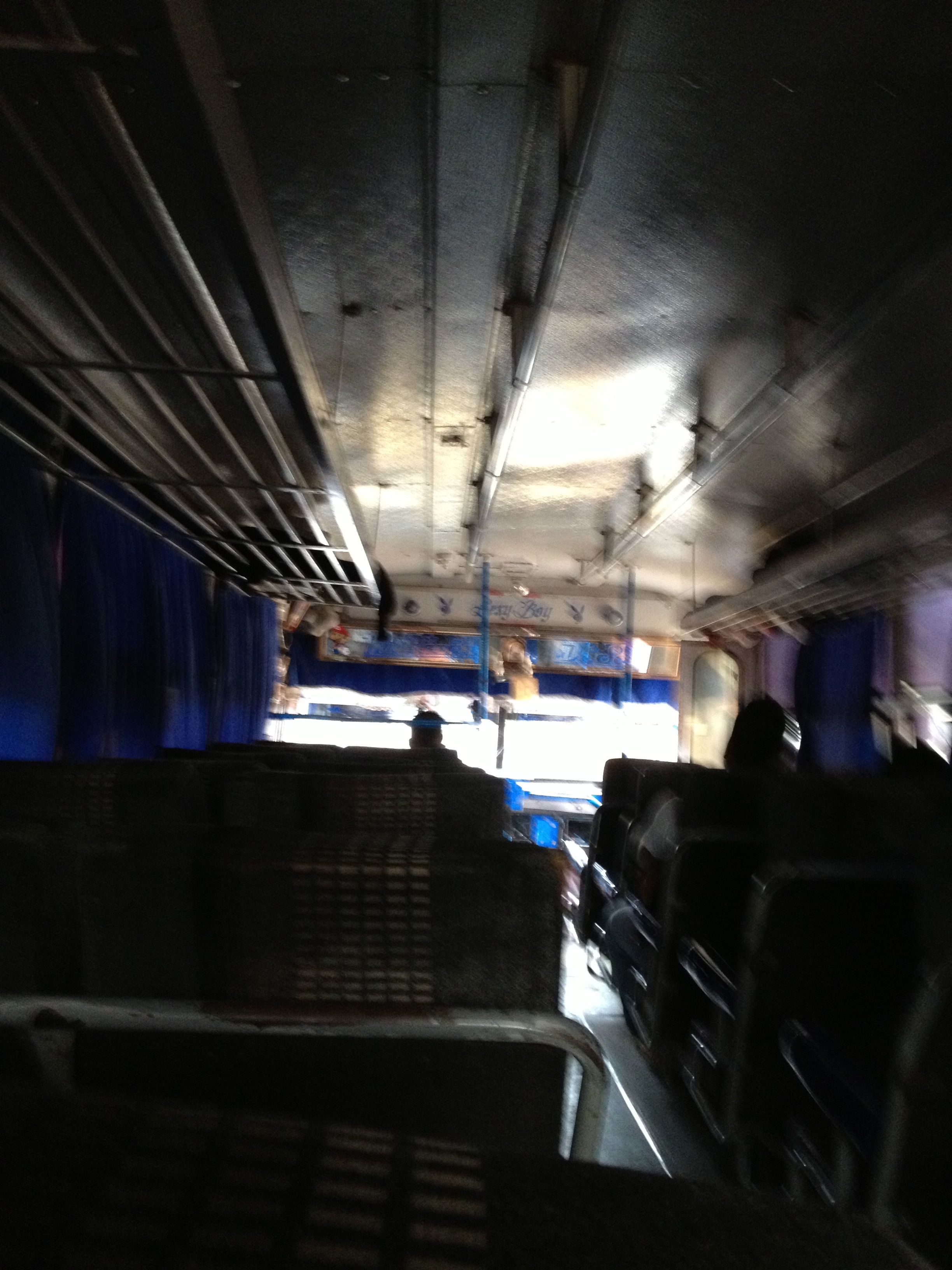 So we climbed aboard the blue-curtained, torn up upholstered, music blaring ride that we were informed by a decal across the top of the windshield belongs to: (in cursive in English) Sexy Boy. The driver wasn’t bad-looking, but I felt as if he’d over-advertised, or maybe it was a loaner bus.