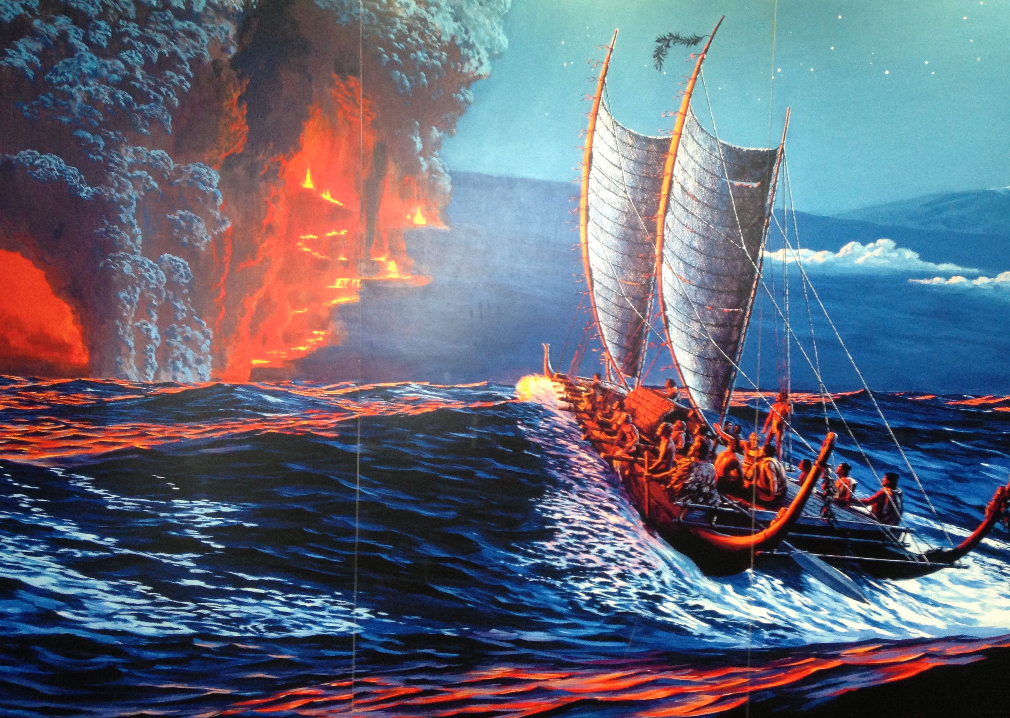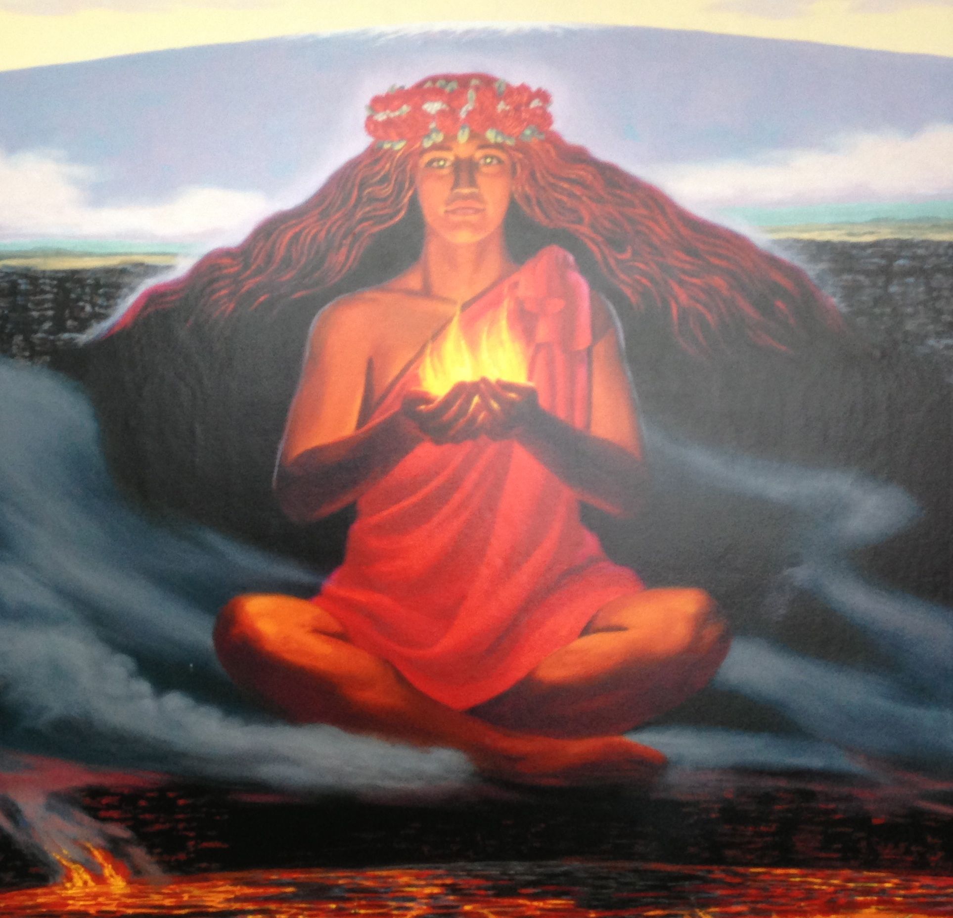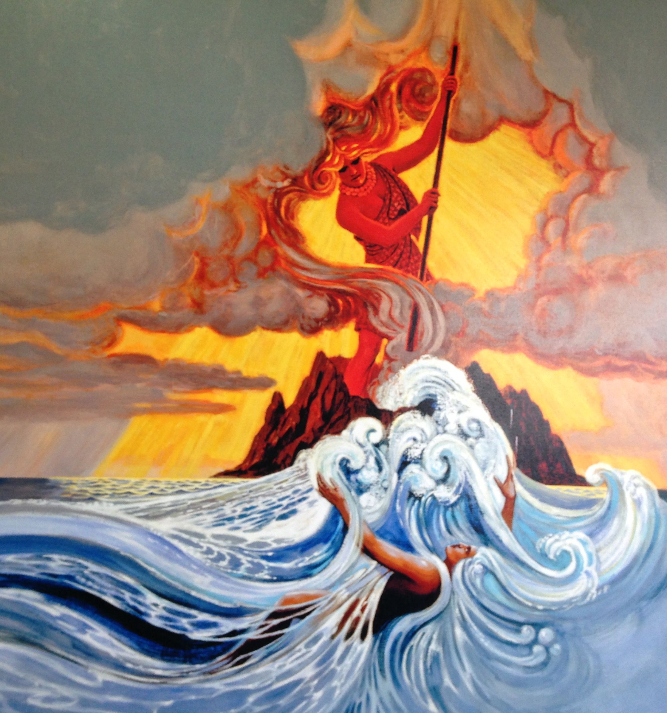 According to Herb Kawainui Kane, artist, historian, and author, Pele is “one of the most dramatic spirits of the Hawaiian pantheon… Ancient traditions about her reveal an impetuous, lusty nature… at times gentle and loving, but always jealous and unpredictable, capable of sudden fury and great violence.”