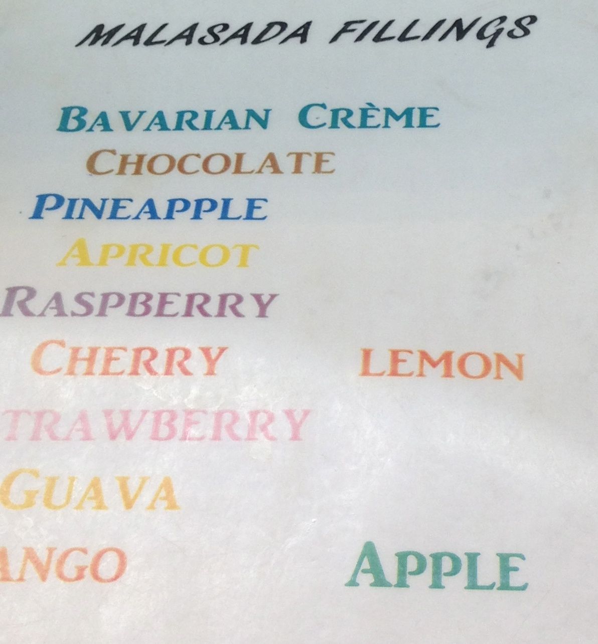 Malasadas are a Portuguese fried dough mixture that resemble a jelly donut and are filled with tropical and other fruit flavors or Bavarian Creme (pictured above).