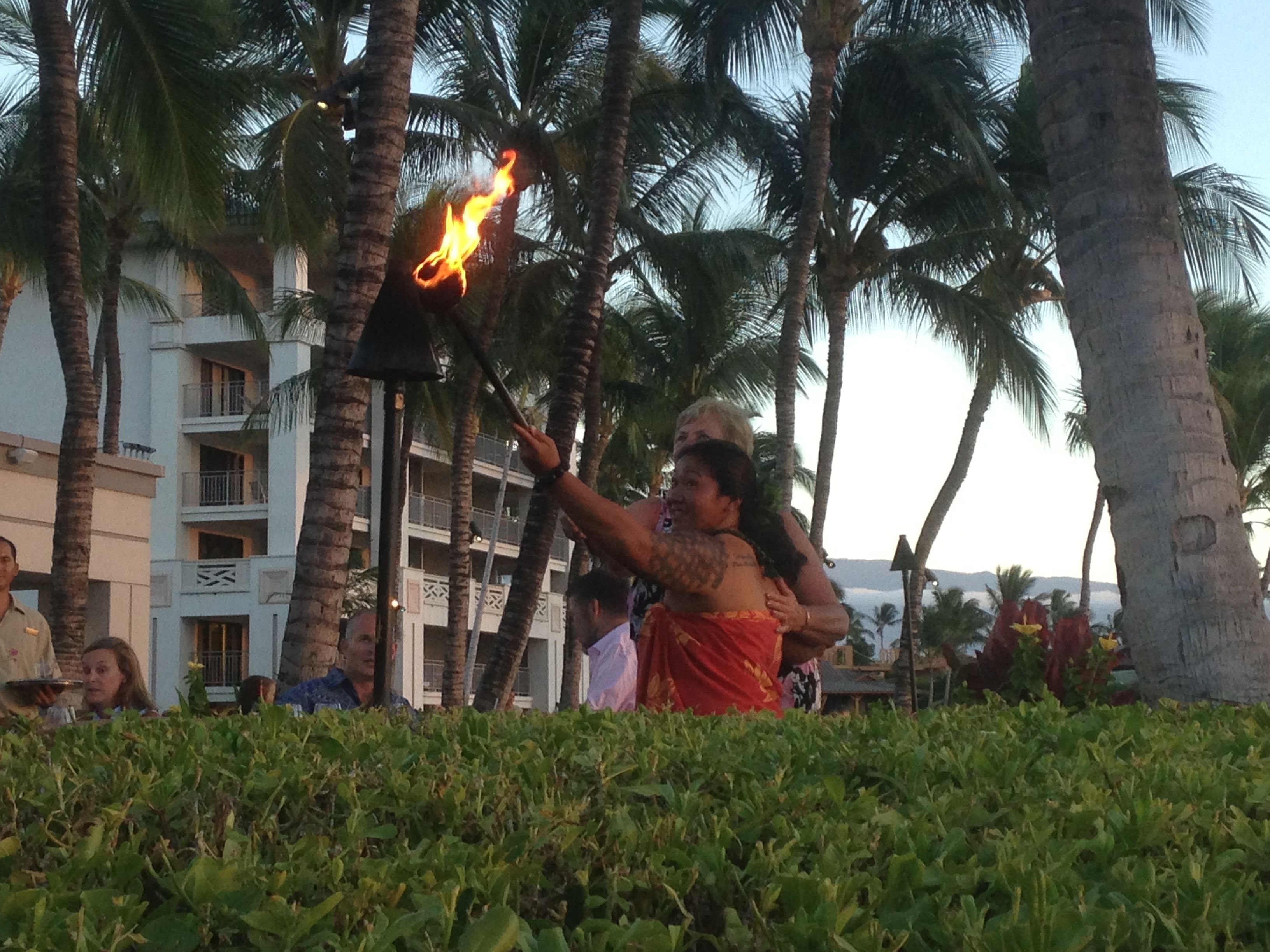 In addition to welcoming evenfall, we were anticipating the torchbearer who runs through vast grounds of whichever resort, lighting the way and finally blowing a conch to say goodbye and express gratitude to the sun.