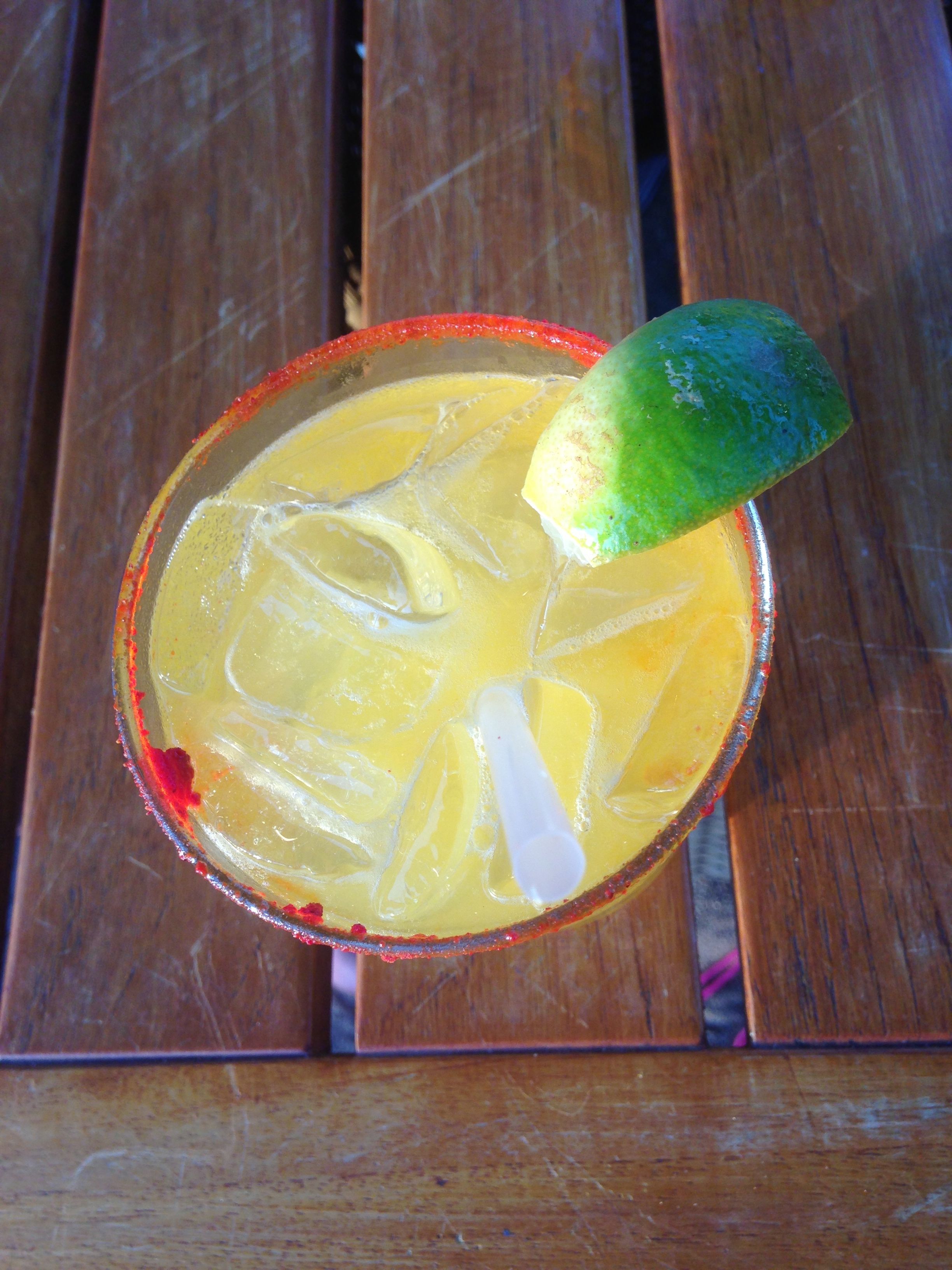 Located at the Fairmont Orchid, Halekai (Home by the Sea), a beachfront café, is the perfect place for appetizers and drinks as a prelude to the show: sunset. Because we were there to toast eventide, I had the Kohala Sunset, a tincture of light rum, orange curacao, orange juice concentrate, and grenadine, and M had the Lilikoi (passion fruit) Margarita. Though they were similar in appearance, I enjoyed the Sunset’s texture more than the slightly more viscous floating lilikoi.