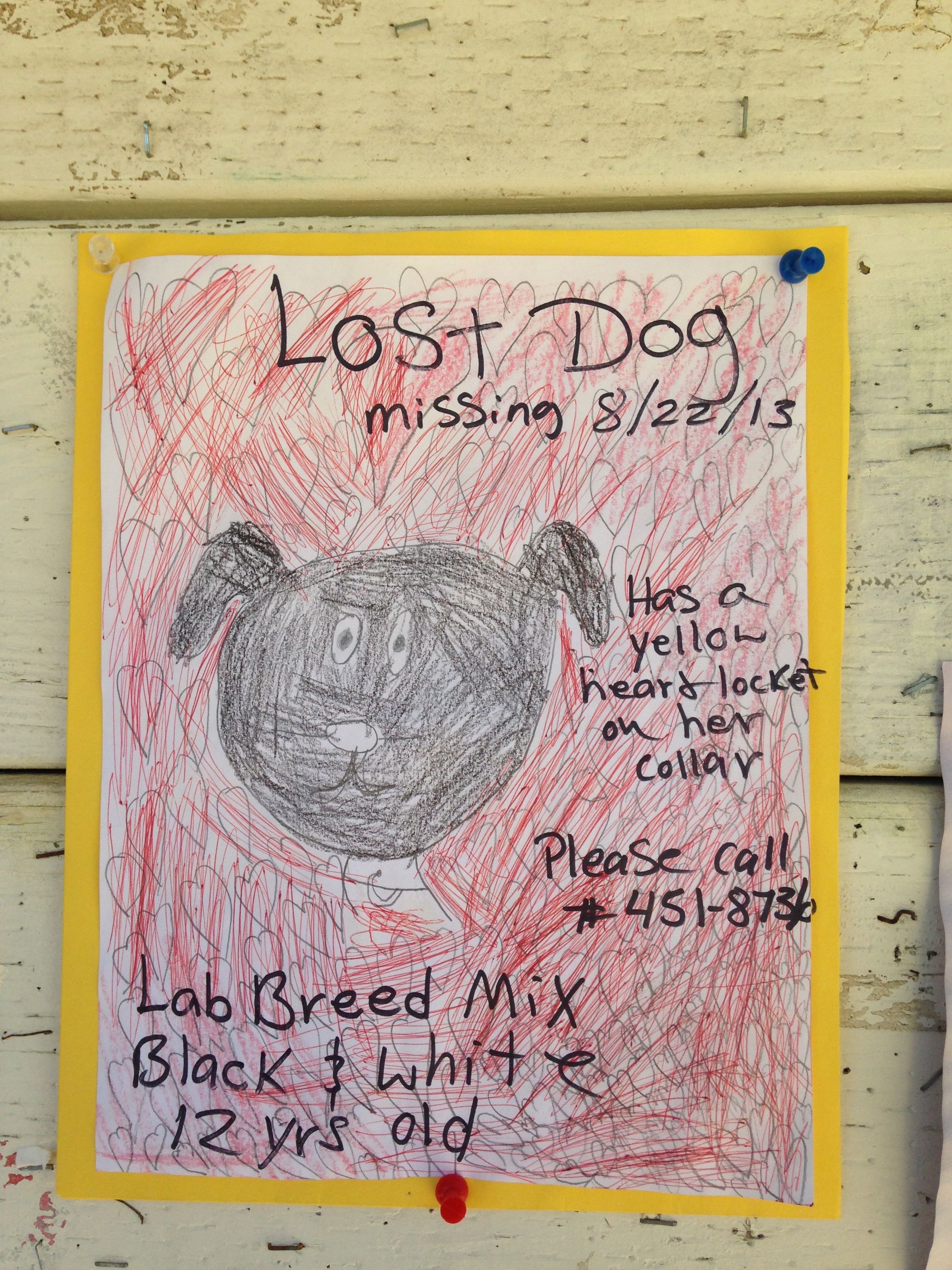 September 10, 2013Weird Things I Saw on a Walk Part III: Lost Dog Scroll down to content In a world where smart phones with cameras are ubiquitous, this poster stands out as unnecessarily pitiful. It definitely got my attention, but it doesn’t really help me to find her or to call her name. Share this: Click to share on X (Opens in new window) X Click to share on Facebook (Opens in new window) Facebook Like Loading... Related Published by shewhodaresnothing View all posts by shewhodaresnothing