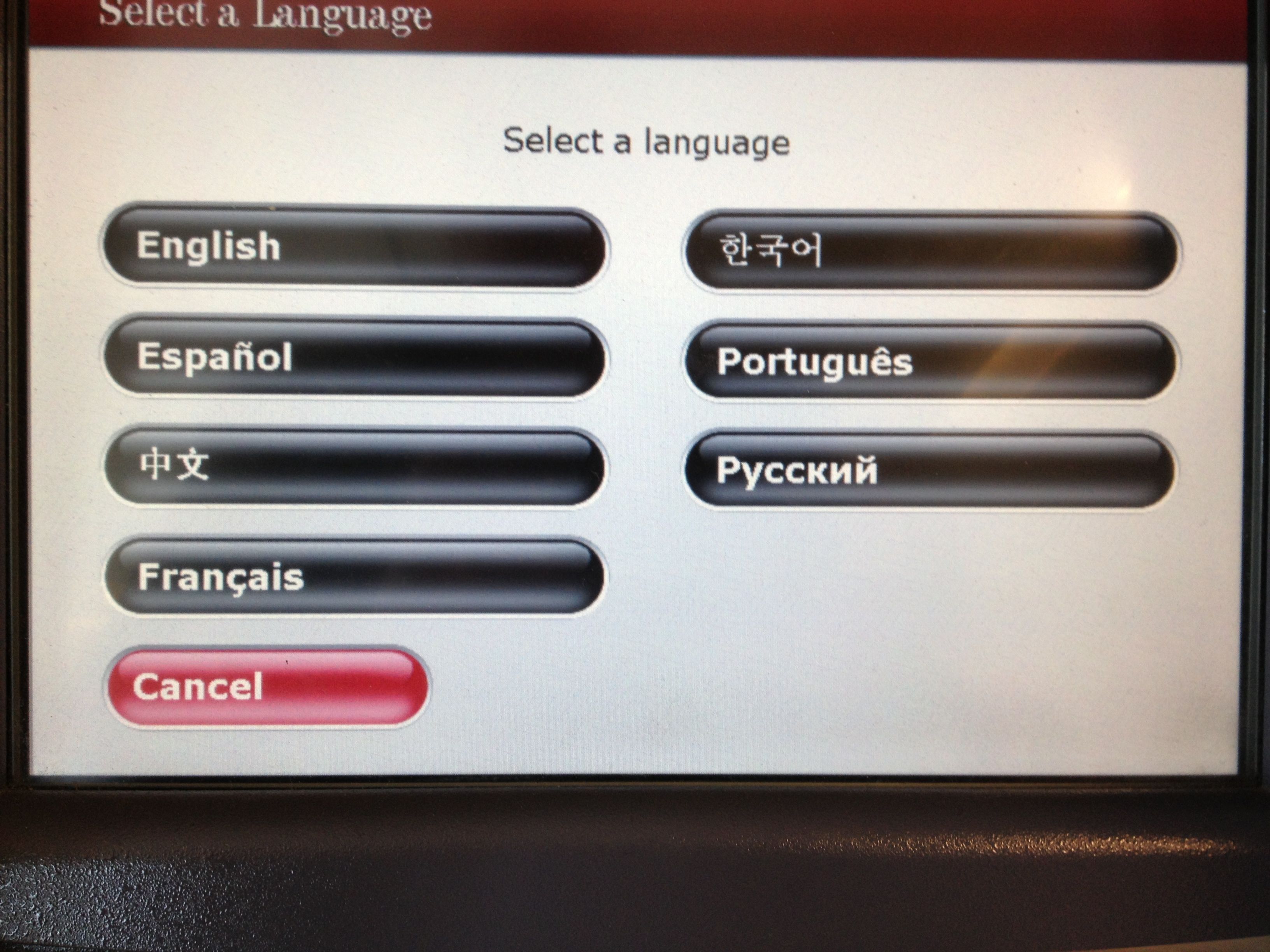 These are the languages offered at the ATM at the Ontario airport.