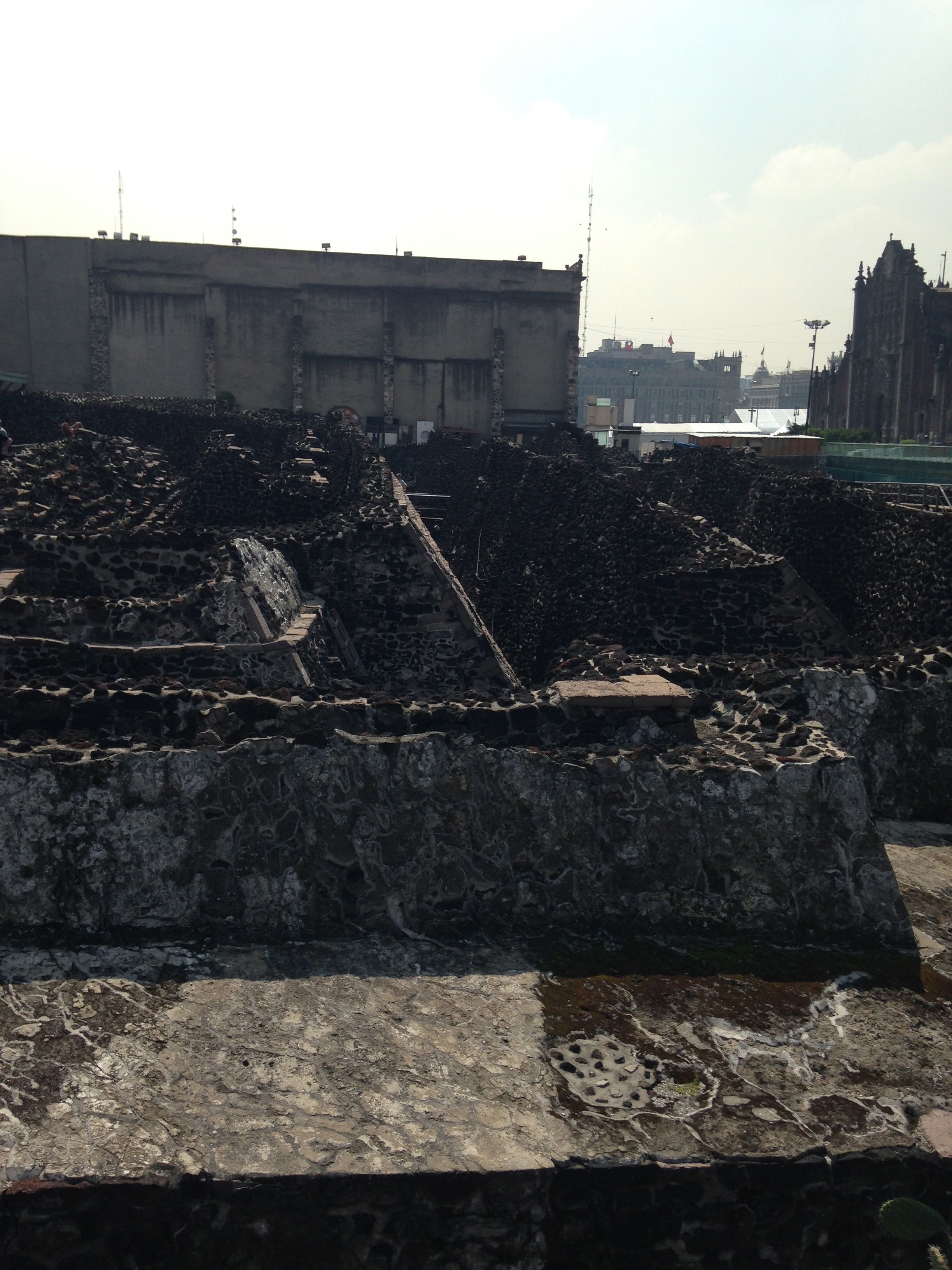 The Templo Mayor is one of the temples of the ancient Aztec City, Tenochtitlan, now known as Mexico City. It is located just off of the zocalo, near the cathedral. A tour of the ruins and the adjacent museum provides information into centuries of this area of Mexico, including information about how the temples were constructed and organized as well as some of the activities within the grounds, particularly sacrifices (including self sacrifices, sacrifices of enemies, and of children).