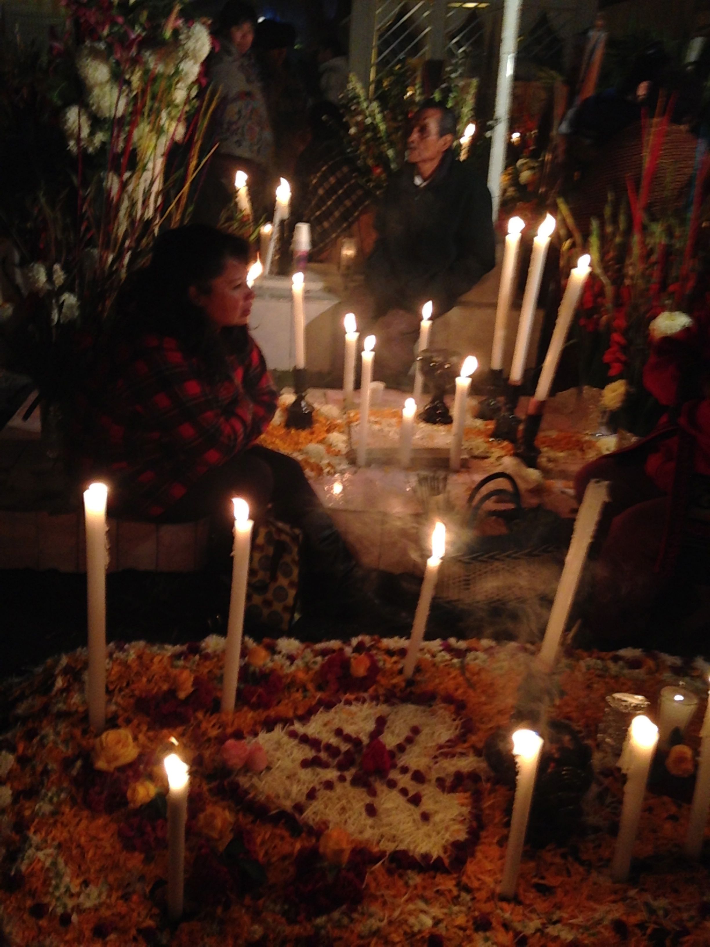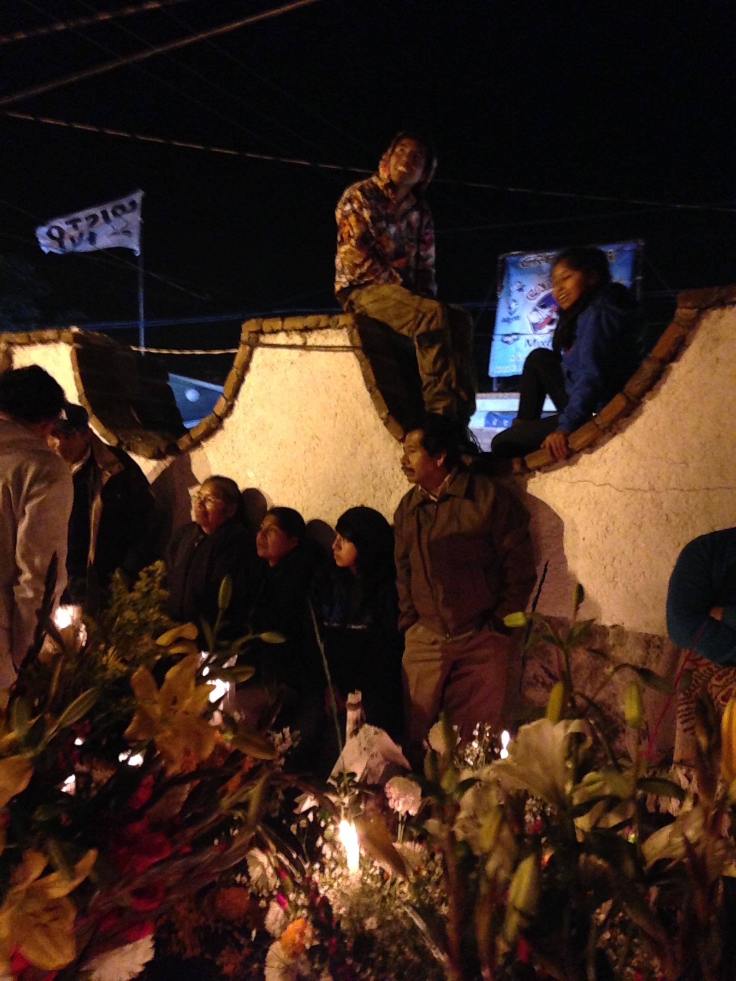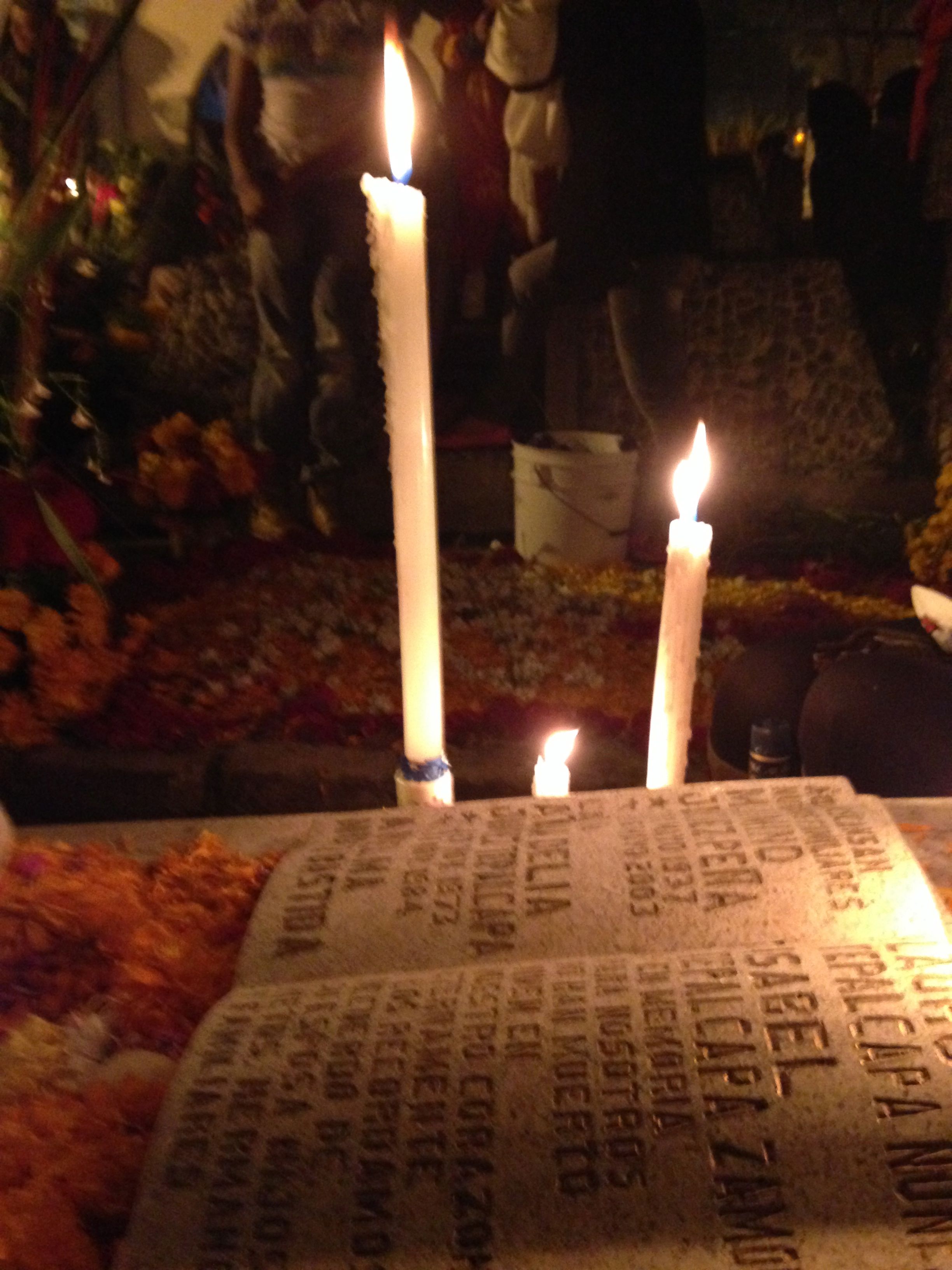 Over the solemn reflection and intimate exchanges, and outside of the cemetery, a group opposed to the celebration blasted Christian rock. This clash of cultures was interesting but unsurprising; last year in Oaxaca during an intercambio, one man seemed insulted when I asked what he was doing to celebrate Day of the Dead. He admonished, “I said I am Christian.”