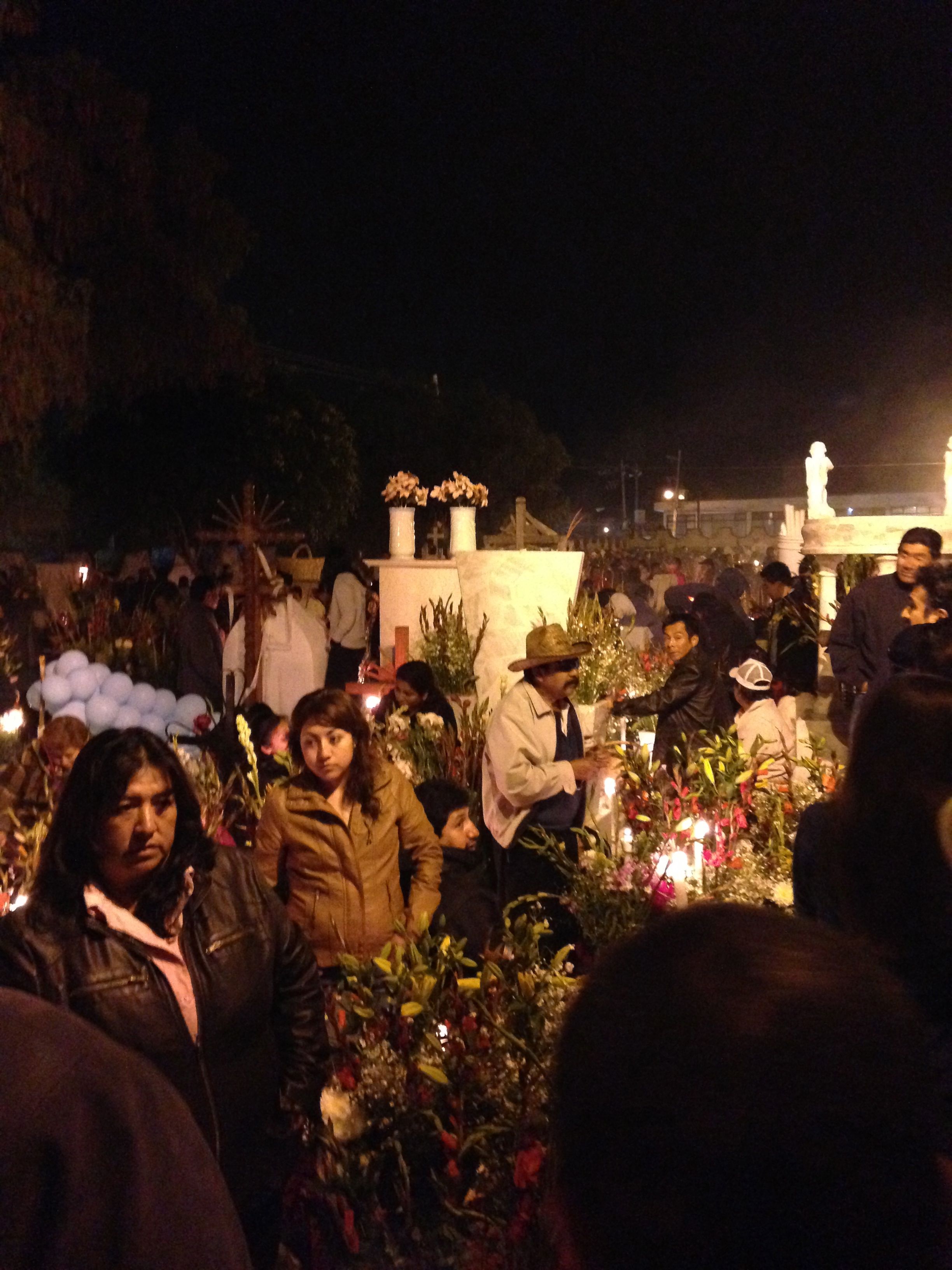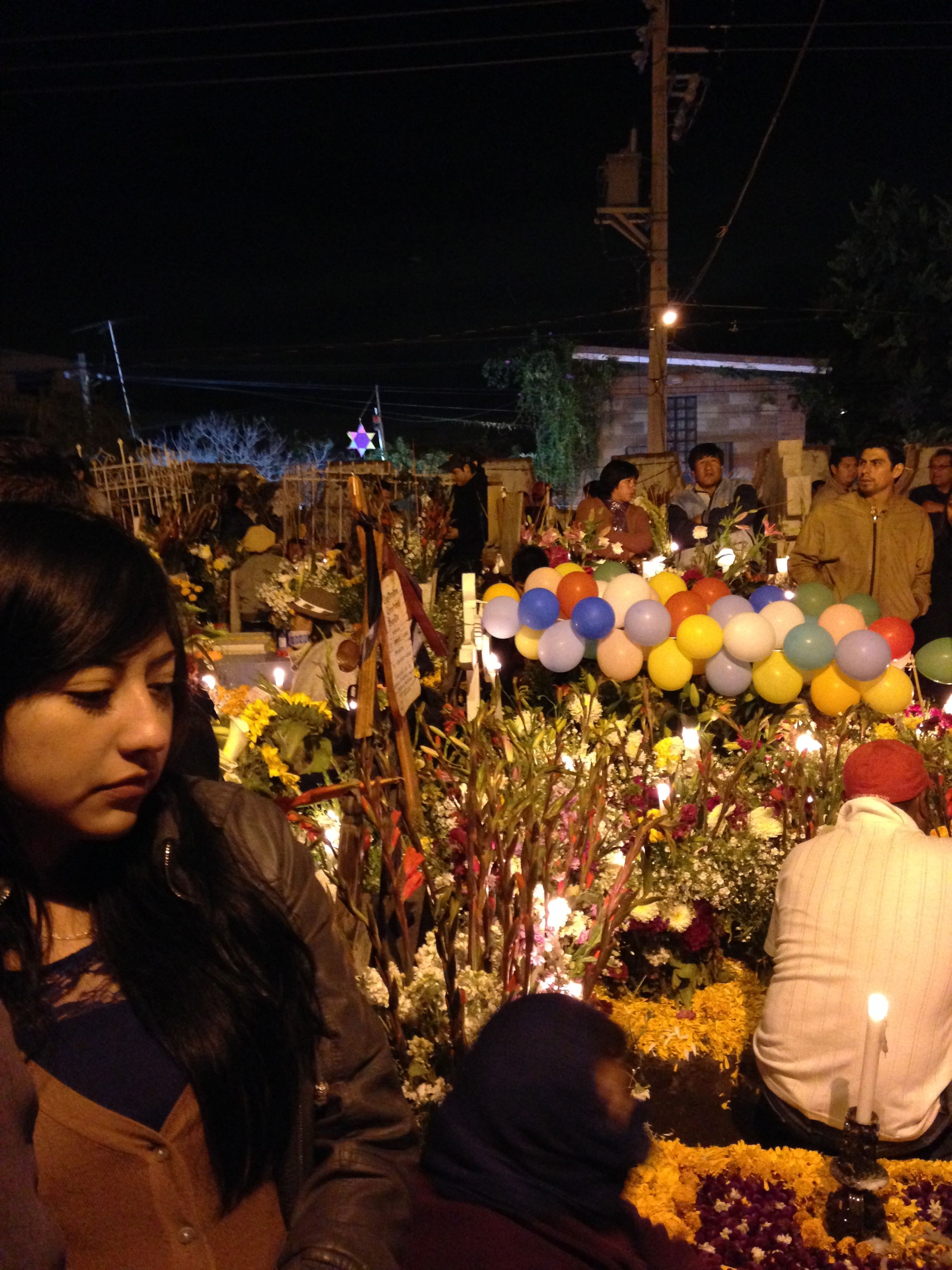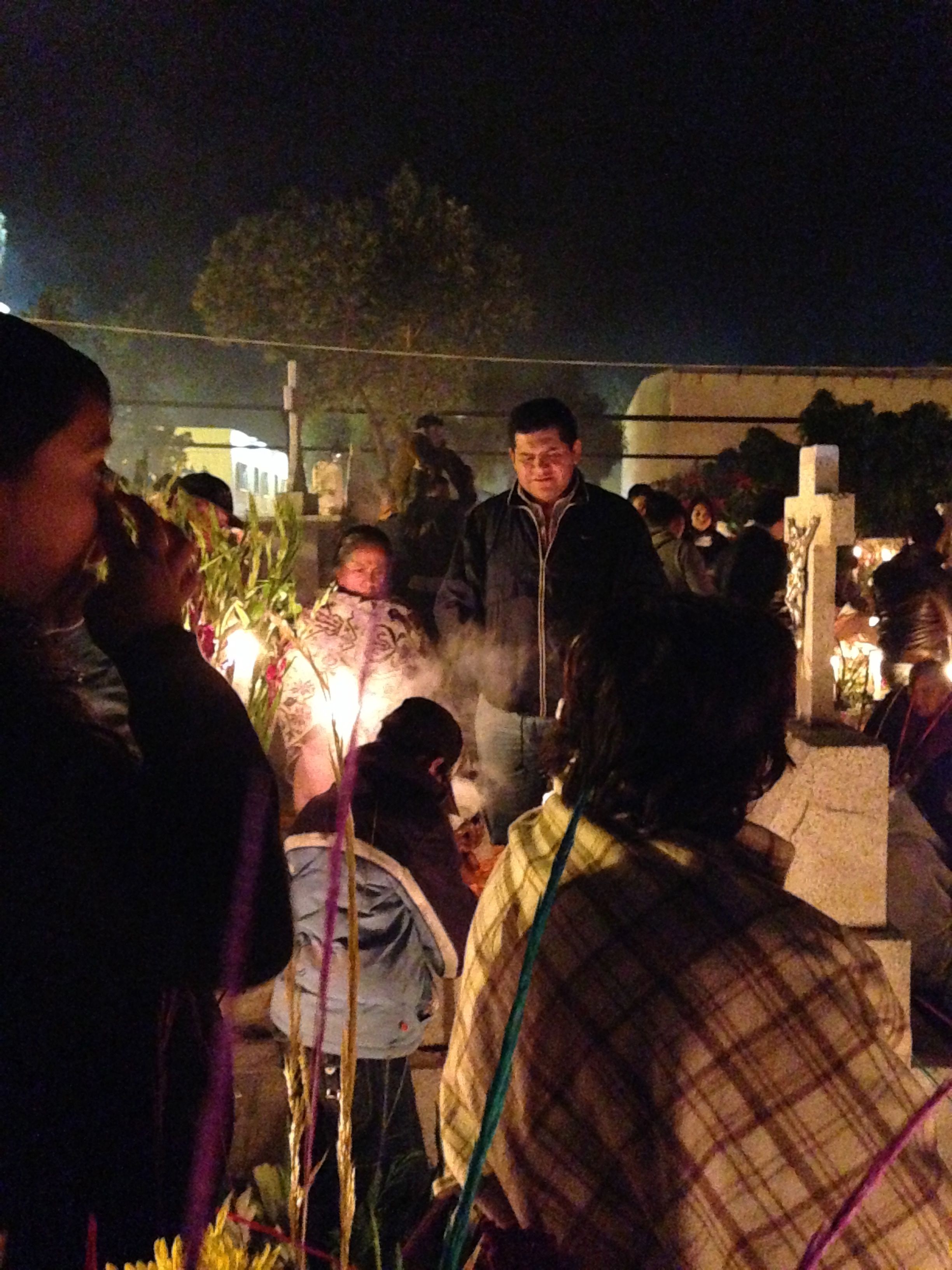 Over the solemn reflection and intimate exchanges, and outside of the cemetery, a group opposed to the celebration blasted Christian rock. This clash of cultures was interesting but unsurprising; last year in Oaxaca during an intercambio, one man seemed insulted when I asked what he was doing to celebrate Day of the Dead. He admonished, “I said I am Christian.”