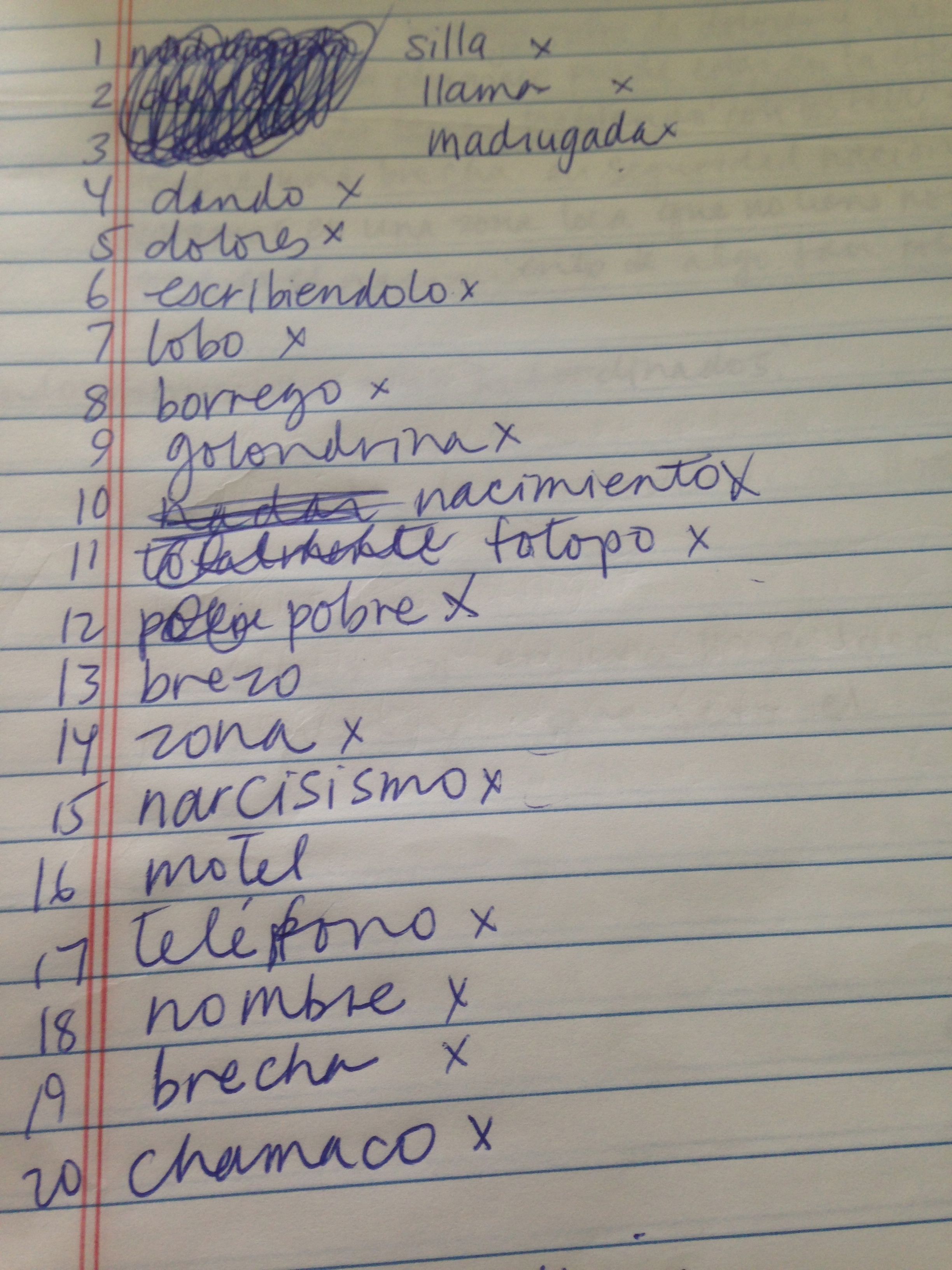The first was to take multi syllabic words and to pick up from the last syllable to form a list of 20 words to assemble into a poem. For example:
