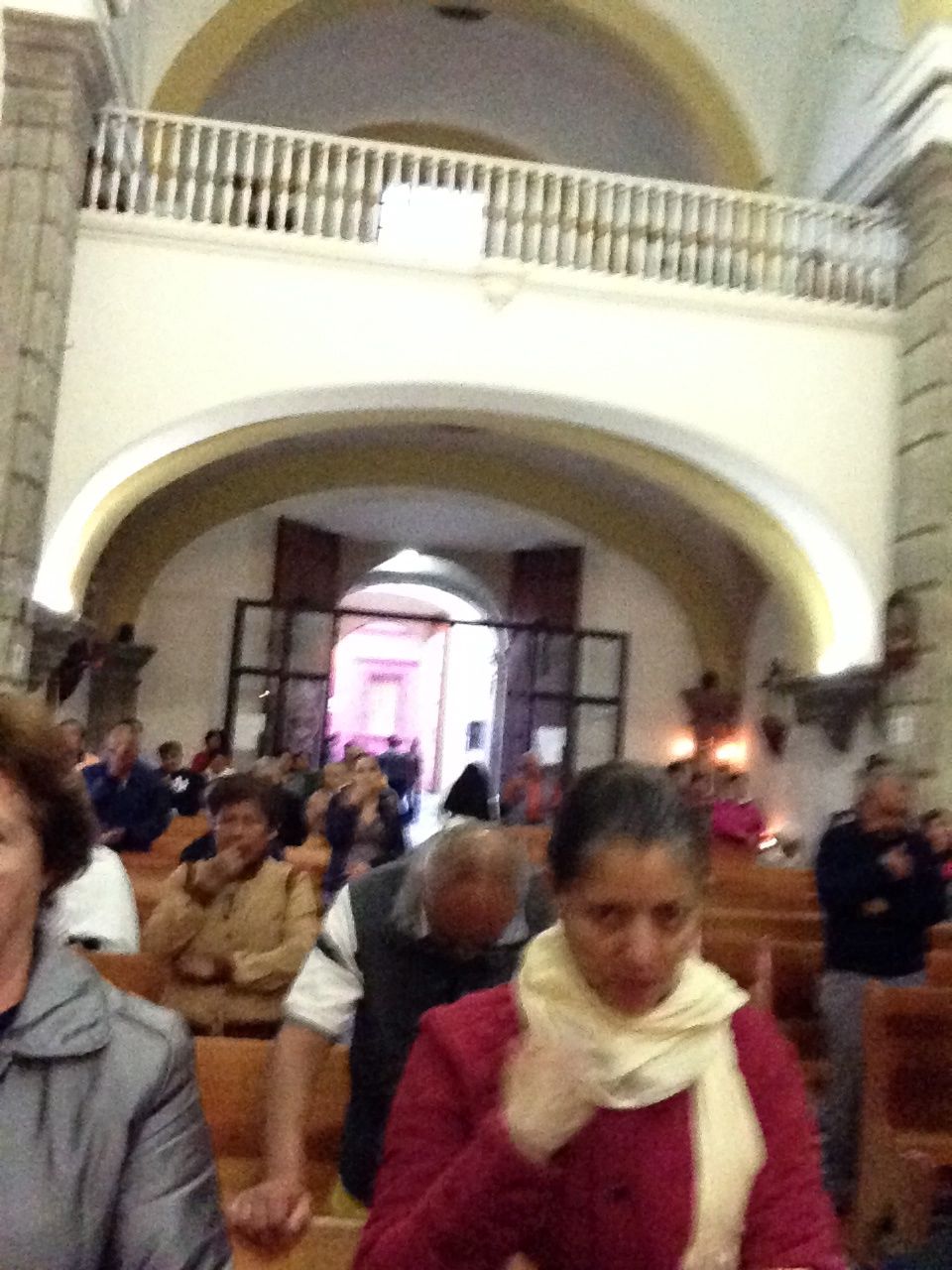 We thank the Santa Patrona de Oaxaca. The band outside plays, and we begin singing.