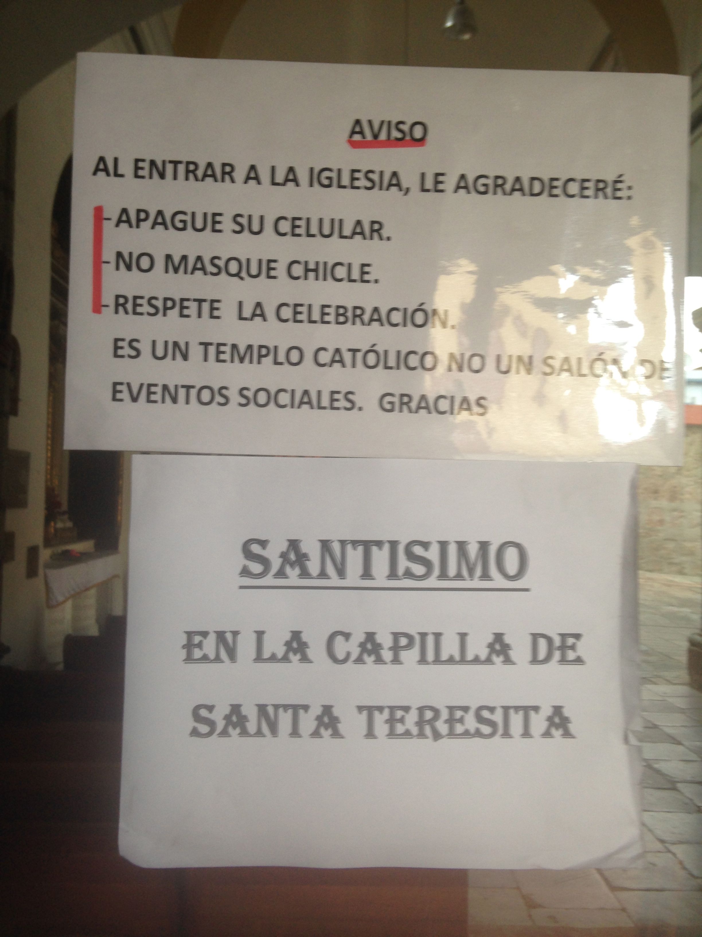 The one below lacks the sass of the first. Just informative, it simply says, “Blessed in the chapel of Santa Teresita.”