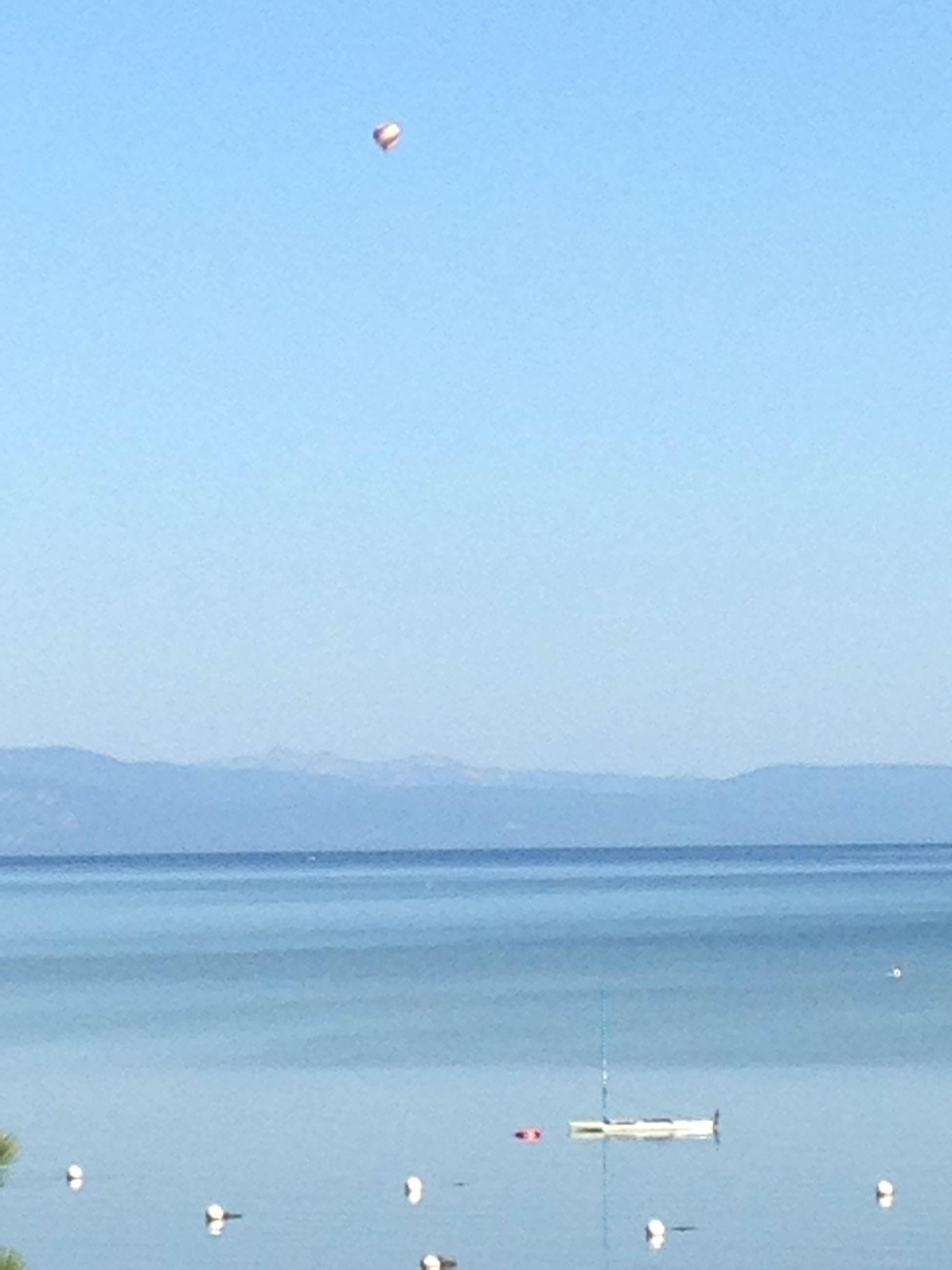 As we were leaving Lake Tahoe the other day, after a brief visit for some swimming and bicycling, I asked M- if I was right in seeing a hot air balloon over the lake.