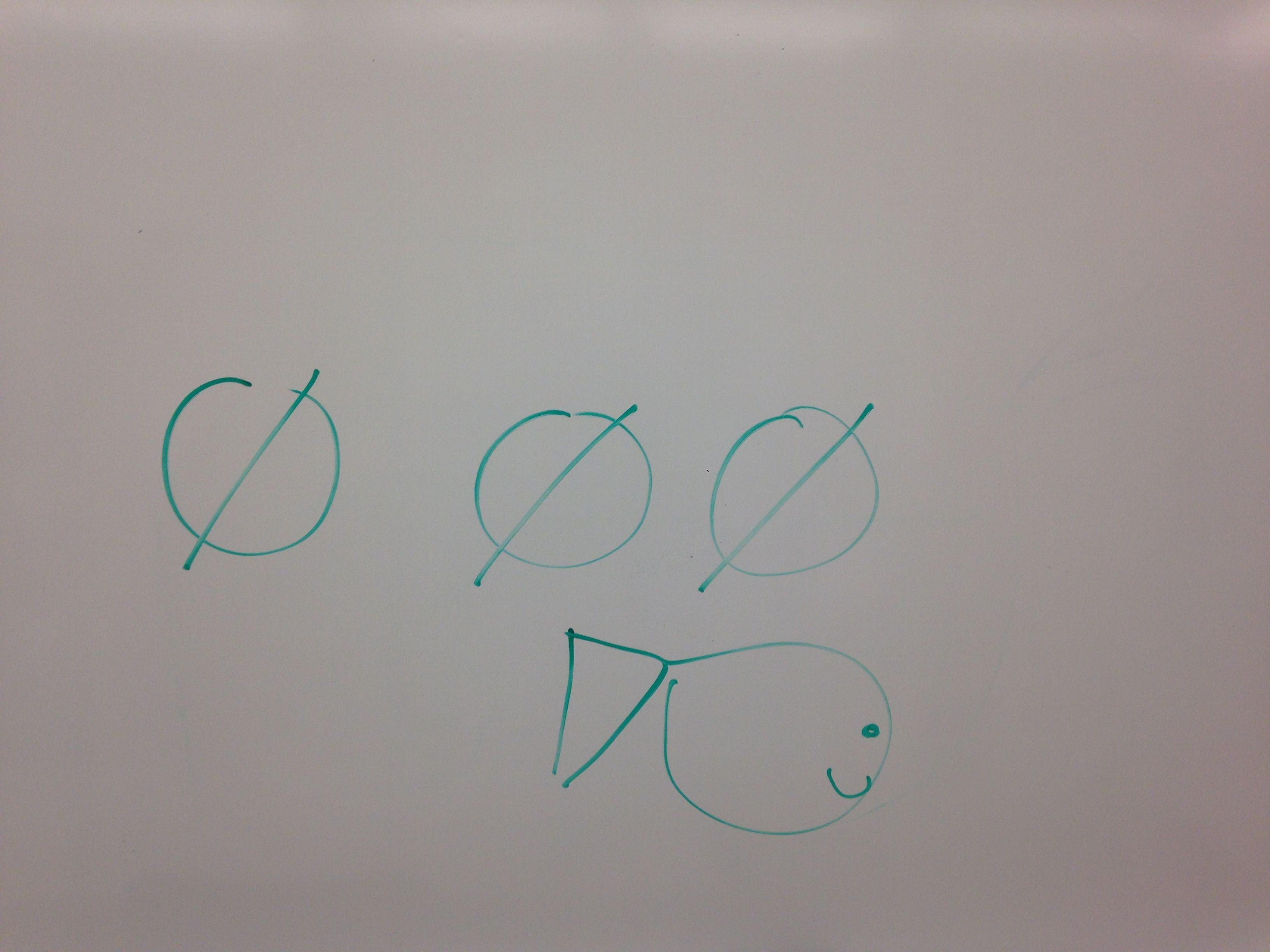 (The fish represents the Red Herring fallacy, but the three no symbols were emblematic of my reminders to avoid fallacious reasoning.)