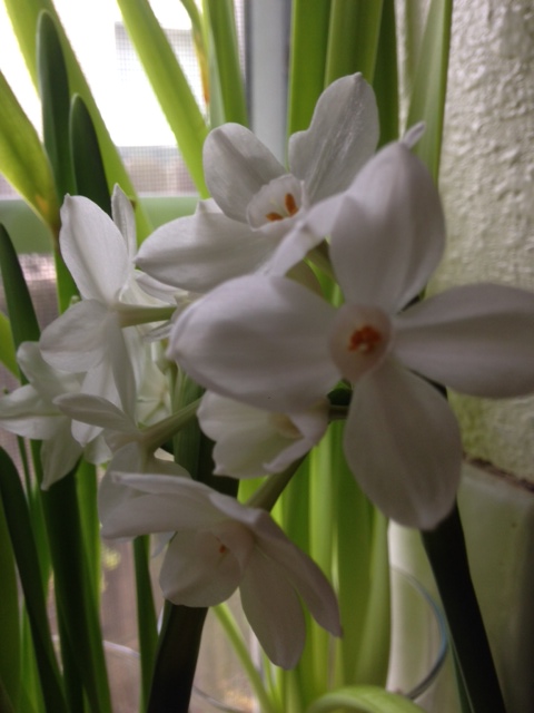 Days later, as winter will flower on the morning lawn in frost that crunches under the kitten’s paw, and the kitchen will don the vestments of spring; These resolute tubers will overnight transform from fledgling shoots to a constellation of snowy florets.