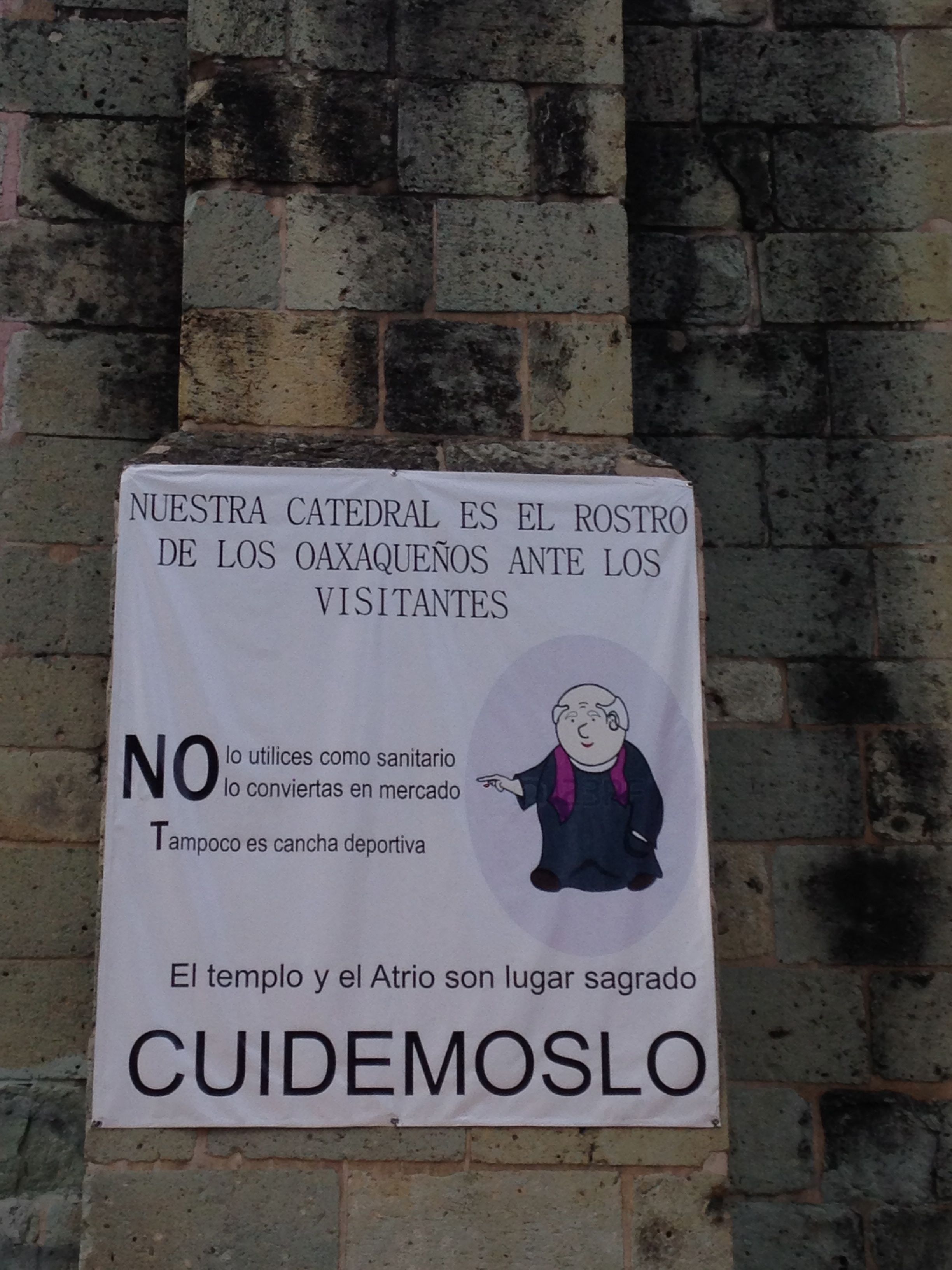Translation: Our cathedral is the face of Oaxacans before visitors.