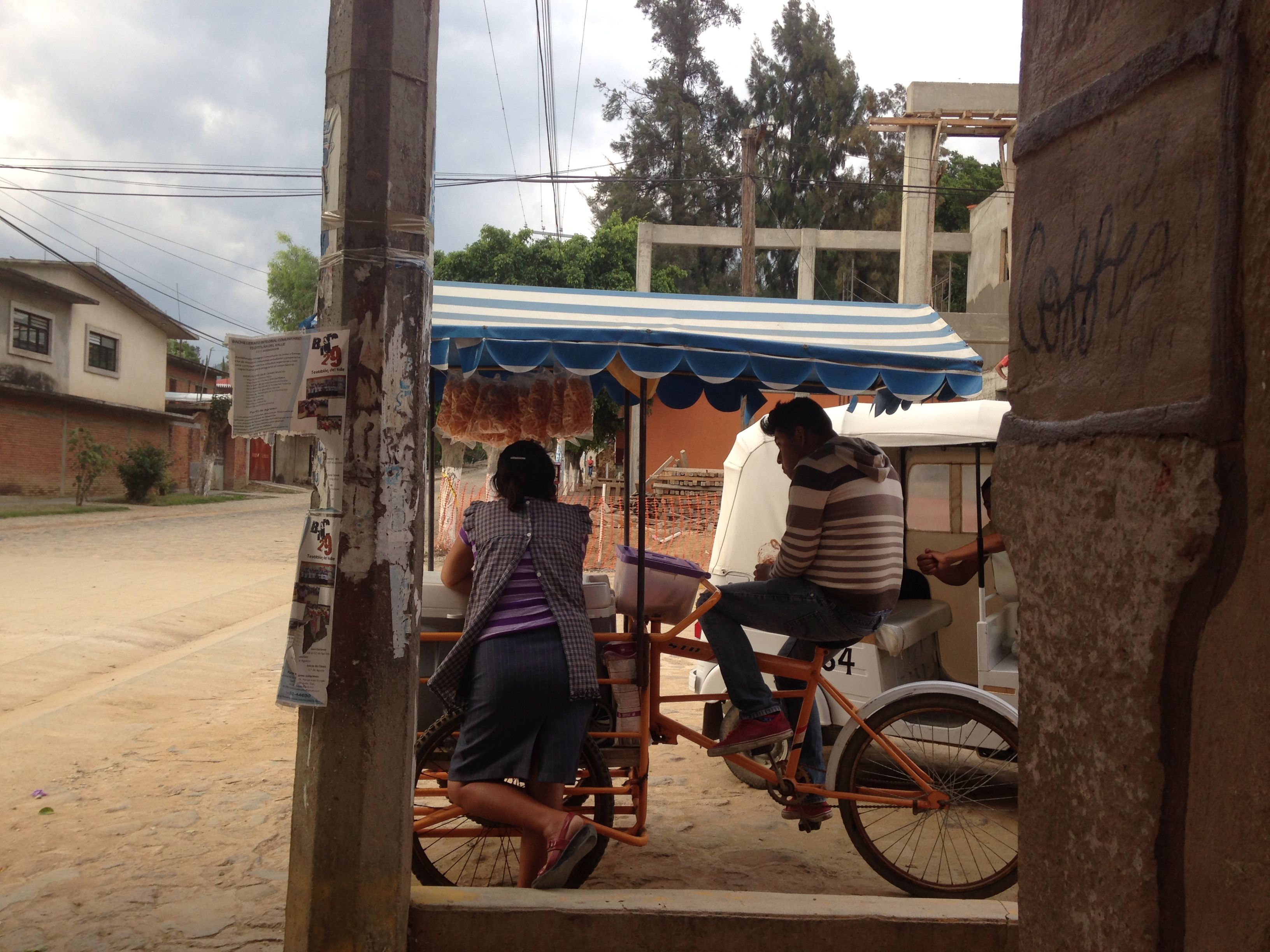 I had been feeling under the weather and had had little other than Gatorade and Pedialyte since I had seen her last. I wasn’t sure if I was going to feel strong enough for the trek out to town and then for two hours with my rambunctious class, but once we got rolling, I felt fine again, stronger, as if I could eat anything. I knew that was probably a myth, but when 6:00 came around, I decided, as normal, to linger and watch Tlacochahuaya’s traffic.