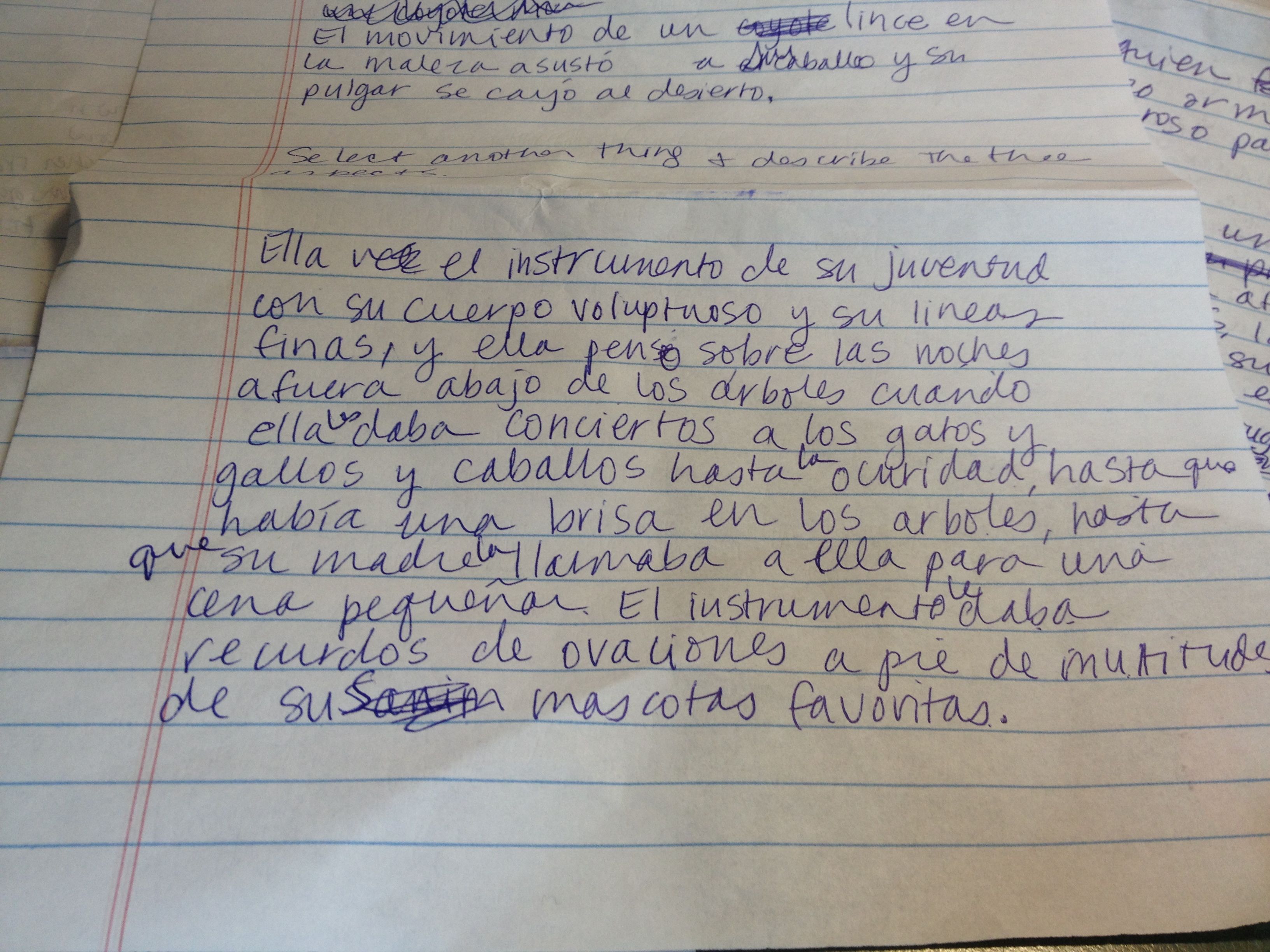 She tells me to pick one. I pick the only one I cannot name: knot. The word for knot is nudo. I think of desnudo: naked and ask if they are connected. She says she’s never thought of them as connected. I think being naked is certainly being without knots. She says: