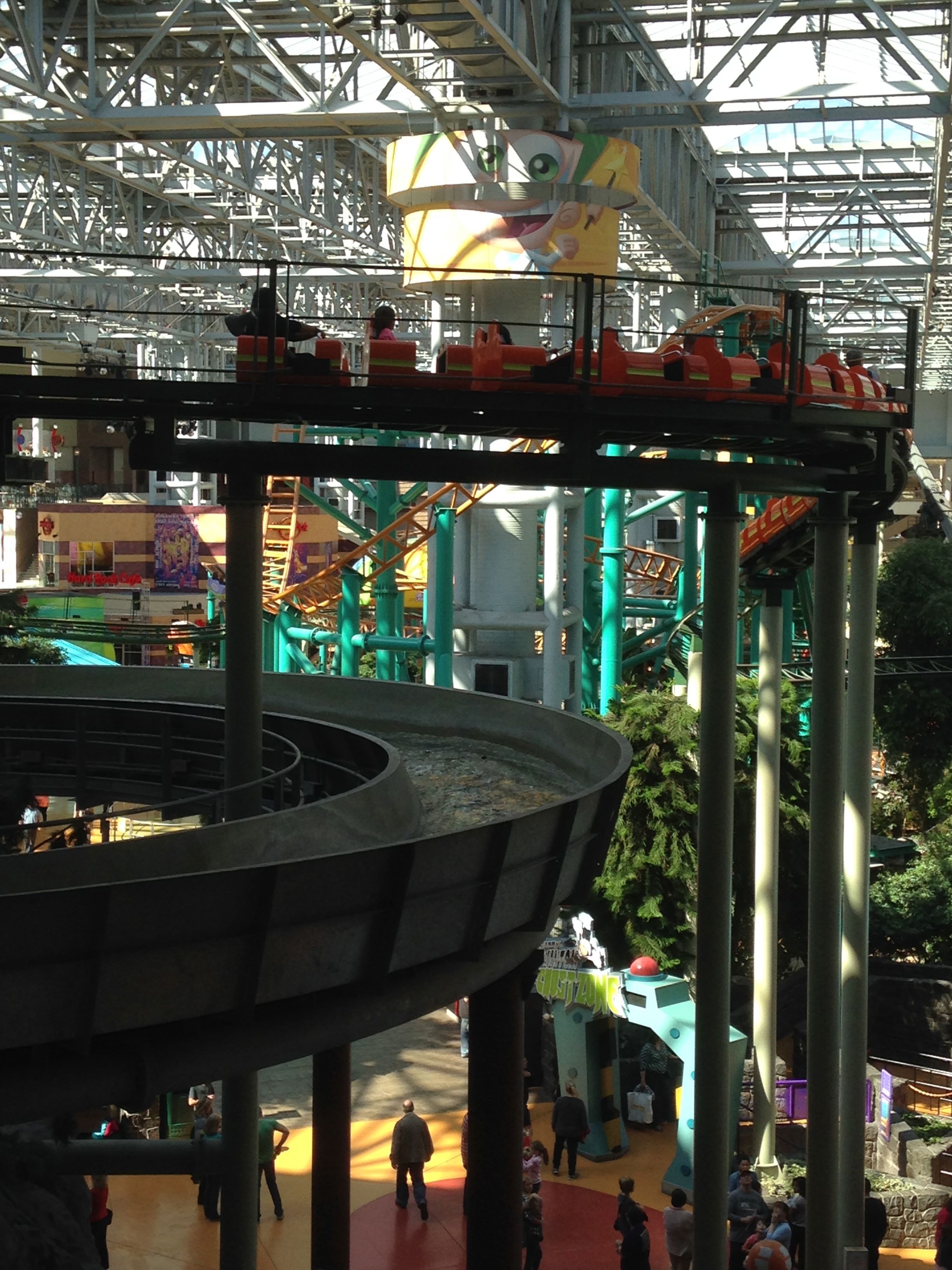 This mall is unnerving. I know it wasn’t just me. I was in an elevator with five girls, about age ten. When the doors closed, one screamed, “We are going to die in here.” Another confirmed, “We are gonna die in here today.” I can remember being that age. I can’t imagine thinking about death, especially not in an elevator on a special trip to a great mall. But the amusement park located inside might be partly responsible for this sensation. People screaming as they are lifted from the ground, others flying wildly or being splashed as they sail down a waterfall in a log. Screaming and screaming in a mall.